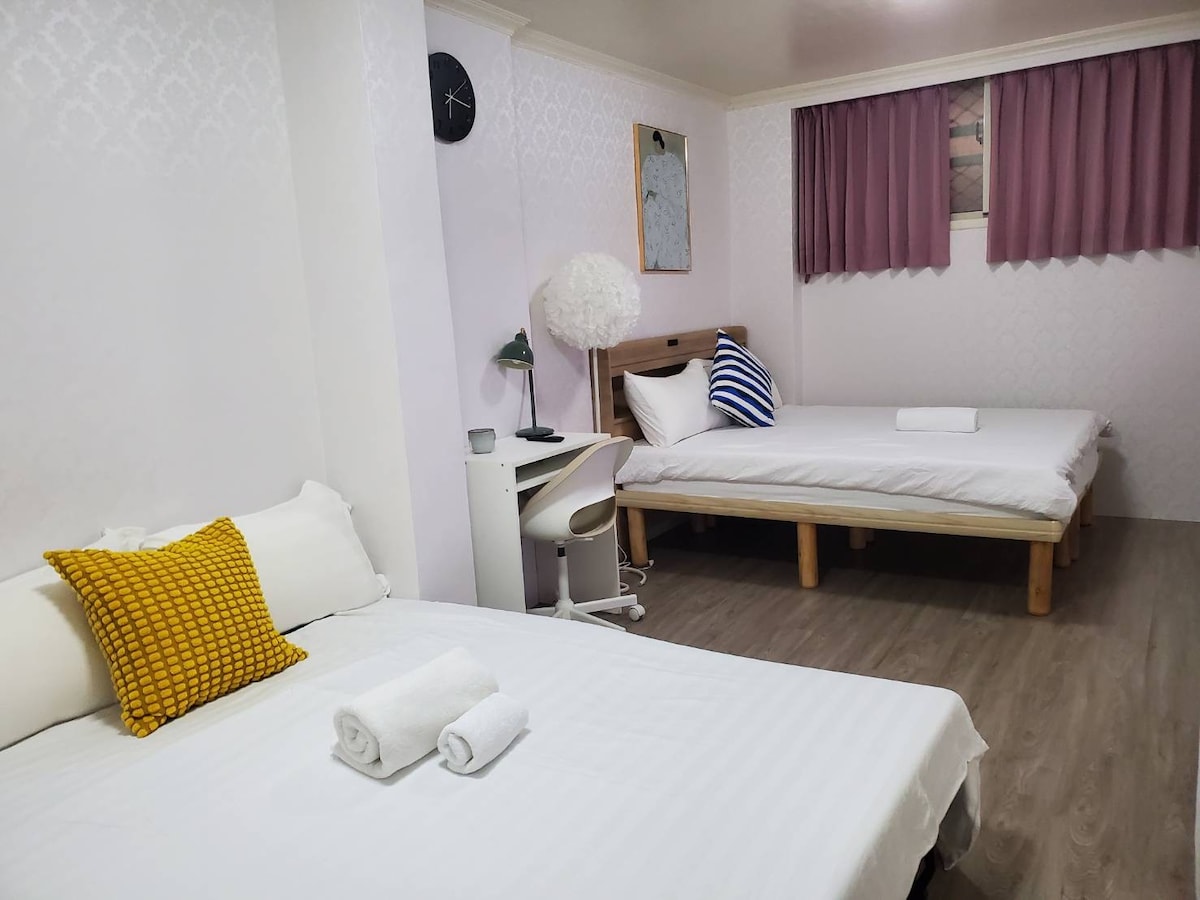 📍 Getting Here 1. By Taxi: About 35 min from Taoyuan Airport. 2. By Airport MRT: Jiangzicui Station (60 min) → 5 min walk to apartment 📌 Before You Book – Please Note! 1. First floor : private suite with double beds and private bathroom 2.Older building with limited soundproofing,please keep the volume down at night 3.A quick intro helps! Let us know where you're from, your arrival time, and who you're traveling with