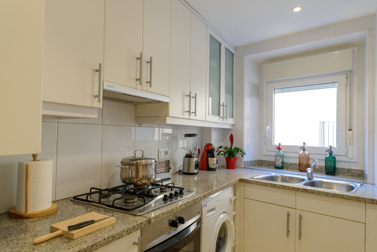 Если вы ищете красивую, тихую и удобную квартиру в невероятном месте, вам понравится пребывание в нашей квартире, расположенной в центре города. Идеальный выбор, если вы приезжаете в паре или с семьей. В квартире две спальни. Одна с высококачественной эластичной кроватью размера Queen size и второй спальней с односпальной кроватью и диваном-кроватью. Полностью оборудованная кухня, стиральная машина, фен... В гостиной вы найдете книги, плоский экран и безлимитный Wi-Fi.