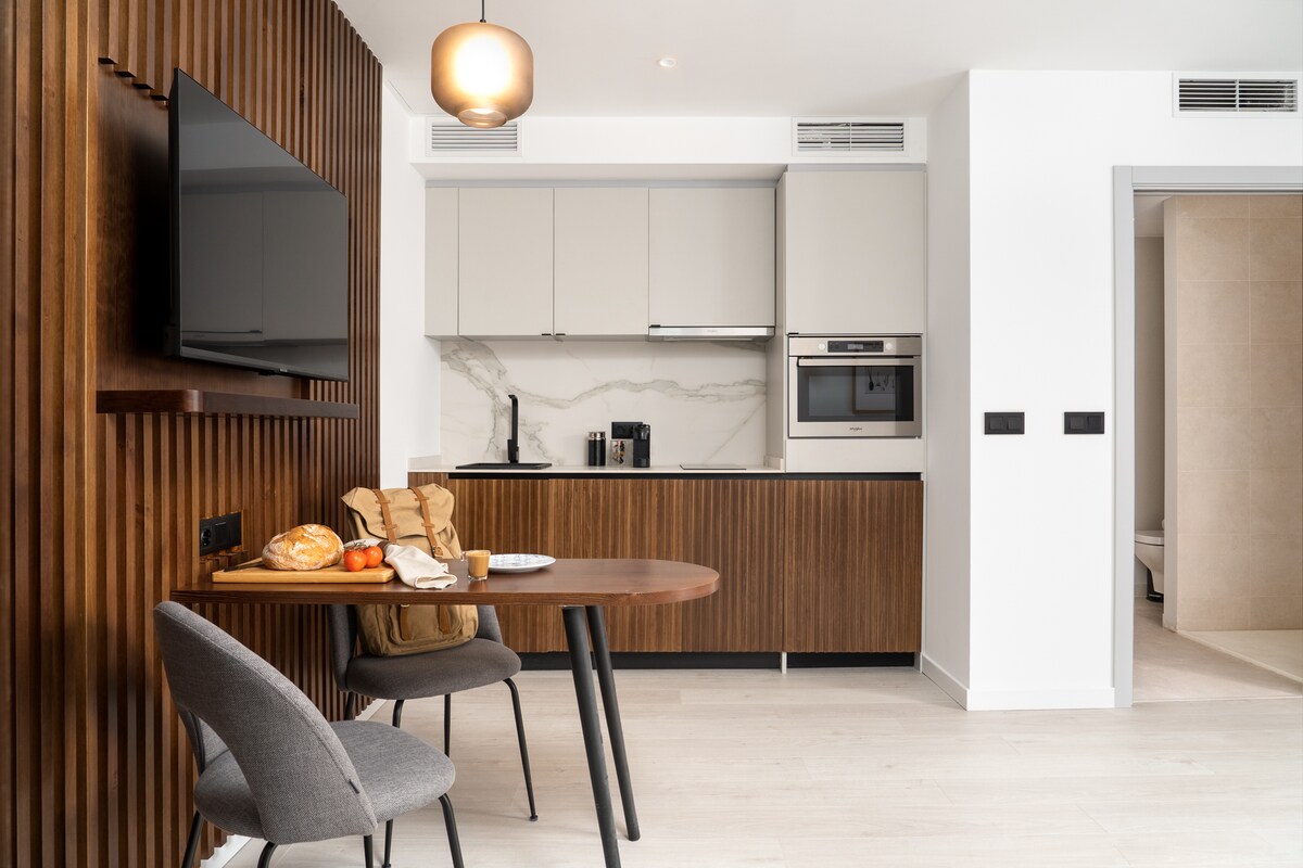 Стильная квартира с одной спальней и одной ванной комнатой в самом центре Сант-Антони, идеально подходит для четырех человек. В спальне двуспальная кровать, а в гостиной - двуспальный диван-кровать, на котором могут разместиться еще два человека. Он сочетает в себе паркетные полы и современный декор и наполнен естественным светом. В квартире есть столовая с большим столом, расположенная рядом с кухней.