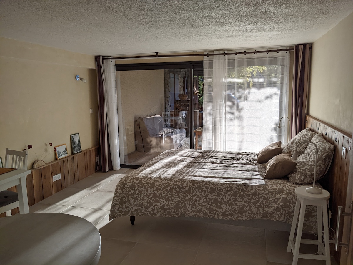 Студия площадью 30 м2 расположена под сводами старой хлебопекарни нашего дома. Гостиная состоит из небольшой кухни, оборудованной всем необходимым, а также спальной зоны с двуспальной кроватью; в нижней части сводов находится небольшая отдельная ванная комната. Отдельная терраса, расположенная в сельской местности у подножья гор, предлагает вам прекрасный вид на долину Дюранс. Идеально подходит для отдыха, вы также можете насладиться на месте выездом из прогулок и альпинистской площадки.