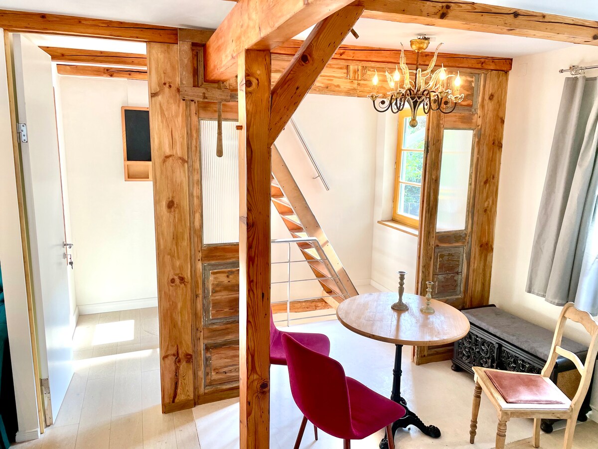 Небольшая квартира в центре Харсфельда (около 30 кв.м). Он центральный, но тихий и уединенный, окруженный деревьями и красивым садом. Амбар и коттедж с соломенной крышей (где живут хозяева) дополняют ансамбль зданий в помещении. Парковка для гостей в помещении доступна (и включена при бронировании квартиры). Важно знать: спальная зона находится наверху и до нее можно добраться только по довольно крутой и узкой лестнице - гости должны чувствовать себя комфортно, поднимаясь вверх!