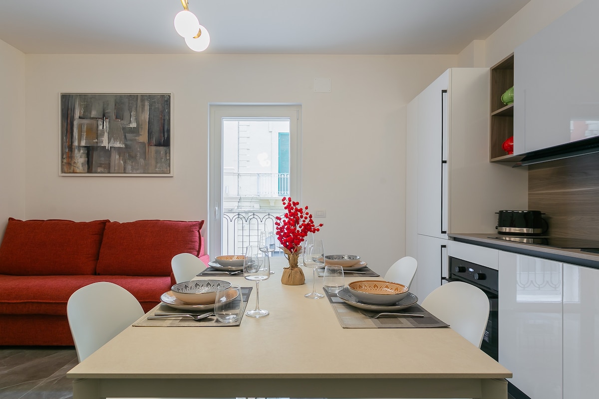 Роскошная квартира в центре Бари с джакузи и турецкой баней — Двухместный люкс с телевизором, широкими шкафами и балконом. — Фантастическая гостиная открытой планировки с диваном-кроватью, креслом, столом и доступом к другому балкону. — Полностью оборудованная ванная комната с двухместным гидромассажем, эмоциональным душем со встроенной турецкой ванной и Bang & Olufsen. - Полностью оборудованная кухня со всей новейшей техникой. - Добавьте нас в свой Wish List, нажав. ❤️