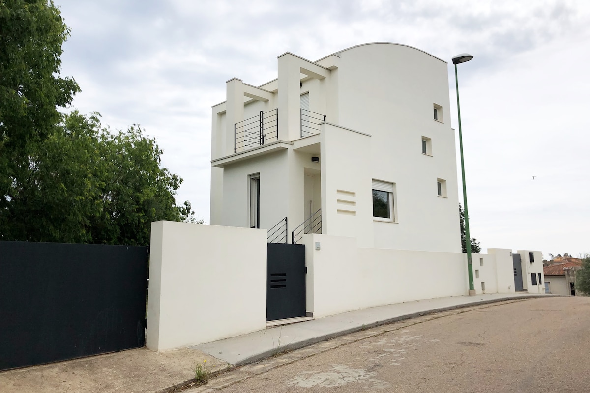 Совершенно новый современный дом, продуманный во всех деталях и с изысканными материалами. Две спальни с двуспальными кроватями, каждая с ванной комнатой, красивой гостиной/обеденной зоной и кухней, расположенной в здании недвижимости, расположенной в частном жилом районе, до частной улицы до слепого переулка и небольшого движения. Всего в 700 метрах от центра города и в 3,5 км от пляжа. Оснащена парковкой и задним двором. Сильная сторона дома - просторная, очаровательная и зарезервированная передняя веранда с видом на море.