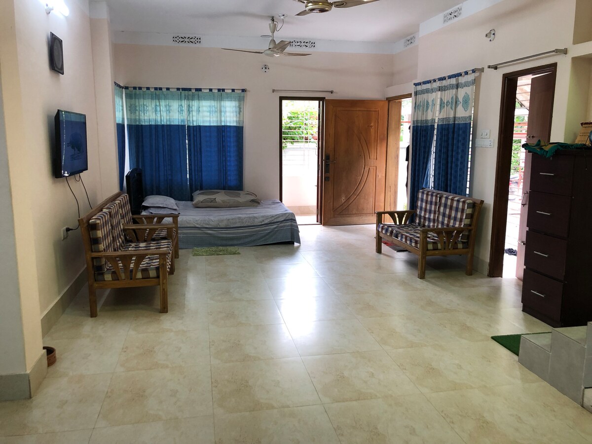 Отдохните всей семьей в этом тихом месте в дуплексном здании в деревне Баришал. В вашем распоряжении большая комната с Wi-Fi, IPS, балконом и ванной комнатой. У нас есть овощной сад, и ваша еда будет органической, в частности, вы можете попробовать свежую рыбу из пруда и получить лучшие впечатления от рыбалки. Мы предлагаем вам курицу на нашей ферме, которая выращивается натуральным рисом и растениями. Прогулка на лодке для знакомства с культурой юга подарит вам лучшие воспоминания.
