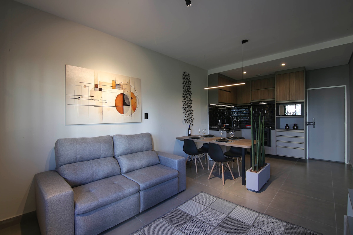 Оборудованная и комфортабельная квартира в привилегированном районе Alphaville Industrial (Баруэри). Наша квартира находится в апарт-отеле со всеми удобствами, такими как крытый бассейн, тренажерный зал, гараж, круглосуточный мини-маркет и круглосуточная стойка регистрации. До бизнес-центров, торговых центров и ресторанов можно дойти пешком.