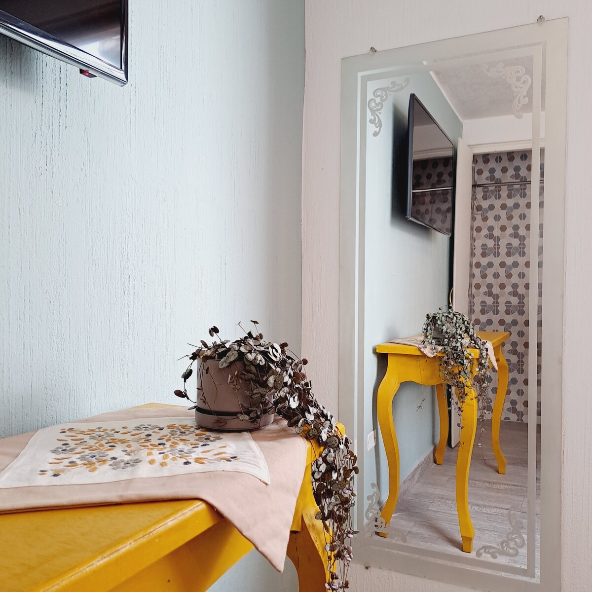 Уютная квартира, отремонтированная в колониальном квартале Кито, расположена на третьем этаже, лофт с захватывающим панорамным видом на исторический центр. К услугам гостей две спальни, две ванные комнаты, гостиная, столовая и кухня, оборудованная фильтрованной водой и необходимыми принадлежностями для удовлетворения потребностей наших гостей. Комфортабельные удобства обеспечивают хороший отдых. У нас есть Wi-Fi 620 Мбит/с, 1,05 Гбит/с, телефонная линия, телевизор с Netflix и нагреватели для душа и кухонных раковин.