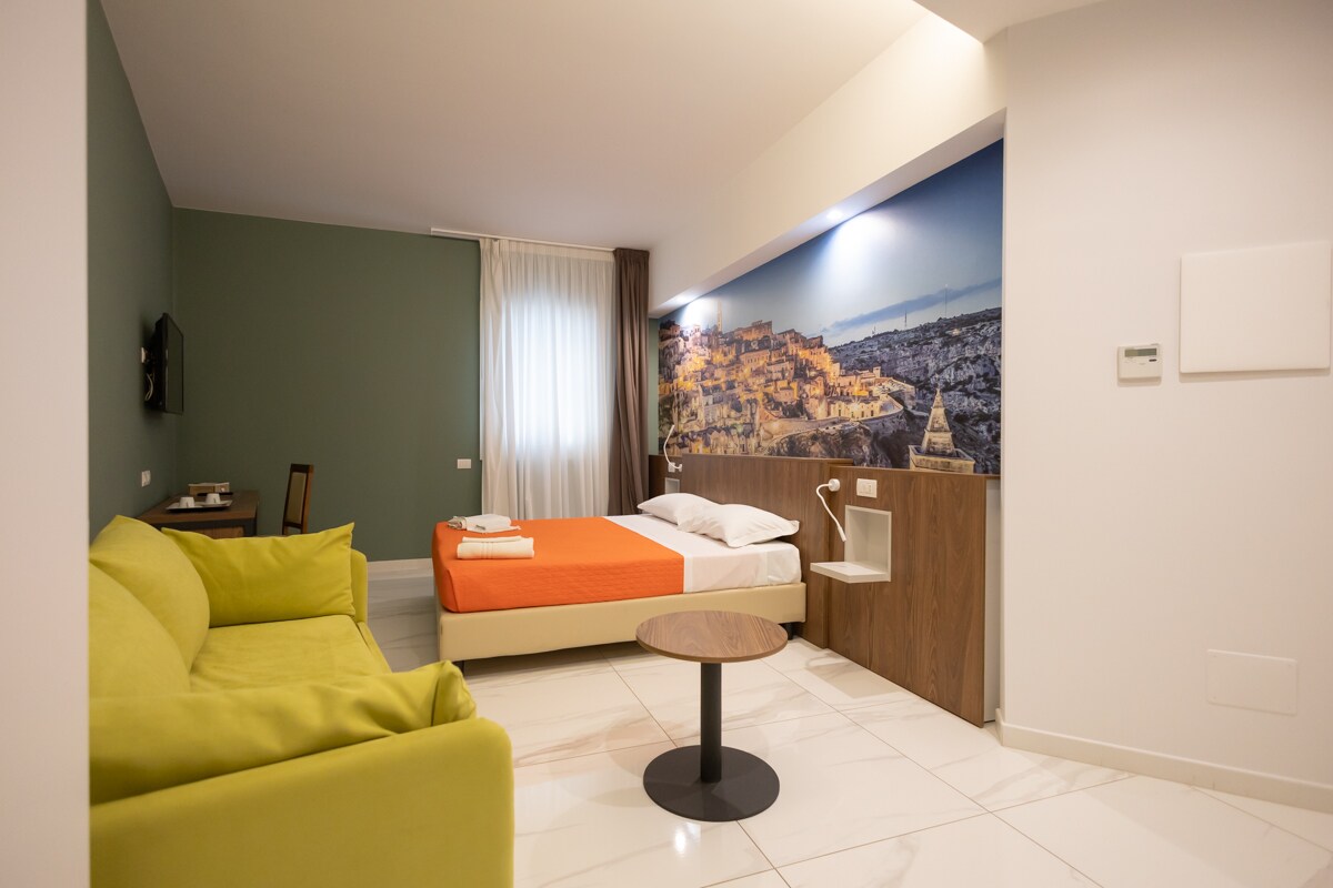 Torrente is a spacious Room with Bathroom ideal for a short break. It is located inside a shared apartment in Matera on the second floor and enjoys a strategic location. The room is non-smoking only, and is equipped with air conditioning, wifi and heating. . City Tax: € 2,00 per person per night to pay at check-in starting from 1 nights for a maximum of 3 nights .