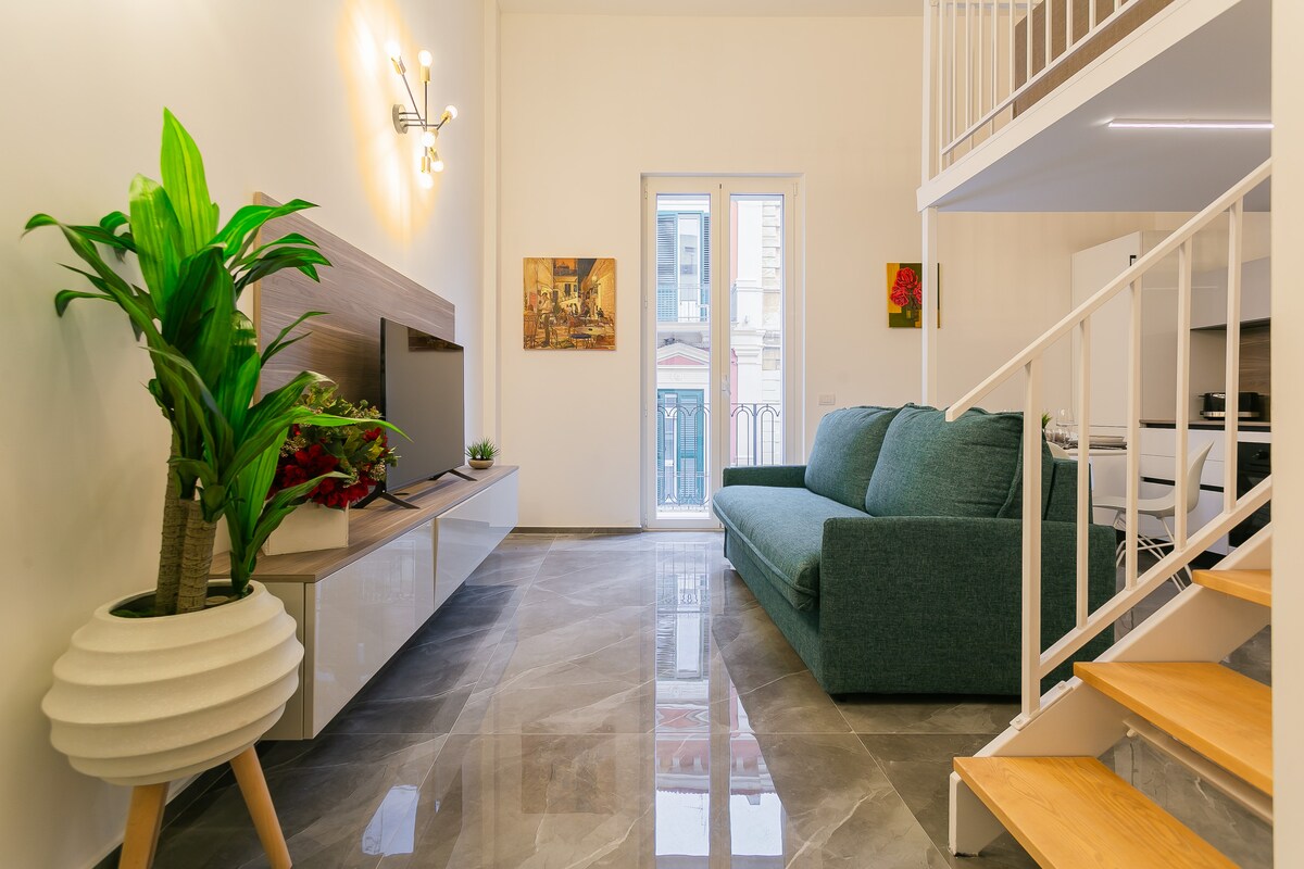 Лучший лофт в полном центре Бари, подходит для 4 человек очень близко к старому городу, телевизор HD. WI FI. Кухня. Кондиционеры. Автономное отопление. Отдельная ванная. Тихий, просторный и светлый. Все магазины и рестораны находятся в минуте ходьбы . 100 метров от остановки автобуса-шаттла до аэропорта.