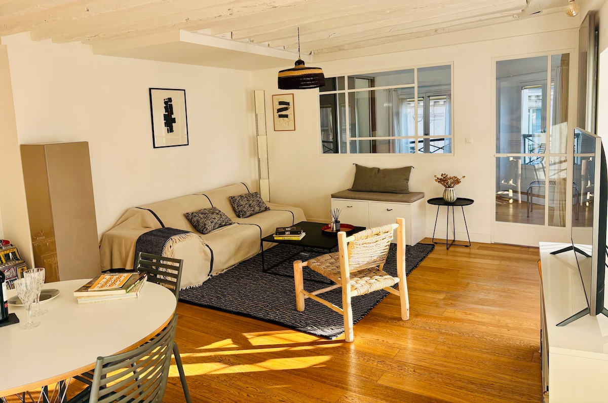 Квартира площадью 60 кв. м с кондиционером и высококлассной планировкой в самом центре исторического района Парижа Монторгей, известного своими продовольственными магазинами, небольшими бистро и ресторанами. Квартира расположена на 1 этаже здания на очень тихой улице. Он был отремонтирован в 2023 году известным архитектором и поэтому очень хорошо организован с очень высокими стандартными удобствами. Вы будете там, как в гостиничном люксе с очарованием, а также настоящим парижским жильем.