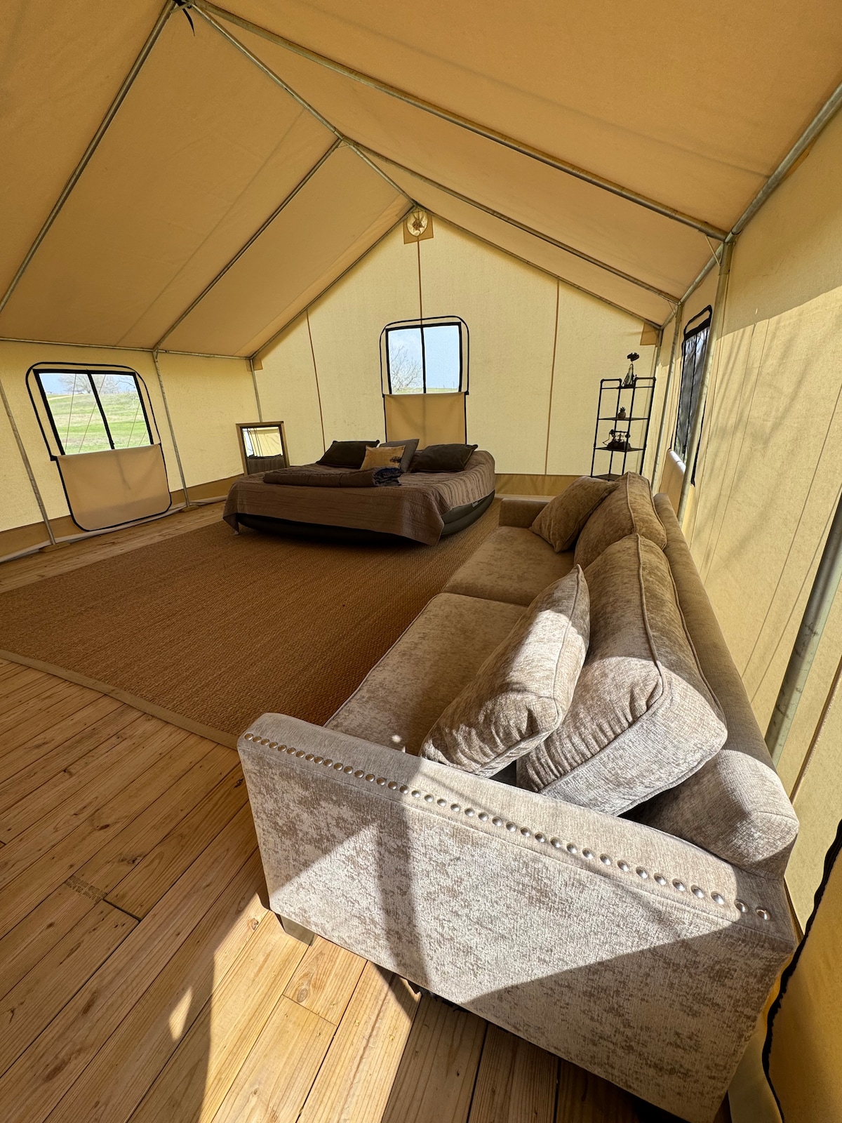 Познакомьтесь с природой в этом незабываемом отпуске. Проведите ночь с нами на ранчо Moonrise. В вашей сафари-палатке есть две кровати размера Queen size, кондиционер и обогреватель! У вас также есть большая крытая терраса с видом на ранчо. Насладитесь утренним кофе с видом на коров :) В вашем распоряжении будет наш общий туалетный дом. Обратите внимание, что в жилье нет душа. У нас есть бассейн, которым вы можете пользоваться во время вашего пребывания, возьмите с собой купальник!