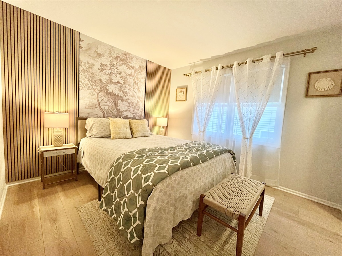 Experience the city in style at Retro Modern Bungalow, the perfect pad for up to 4 friends. Featuring two spacious bedrooms—each with a king bed and luxury linens—a propane fire pit and a fully fenced, pup-friendly backyard. Enjoy central HVAC, speedy WiFi, and a dedicated workspace. A pack-n-play crib is available at no cost. Central location just south of Oak Park, 15 mins from Midway airport, and 20 mins from downtown. Park for free in our garage or catch the train a few blocks away.