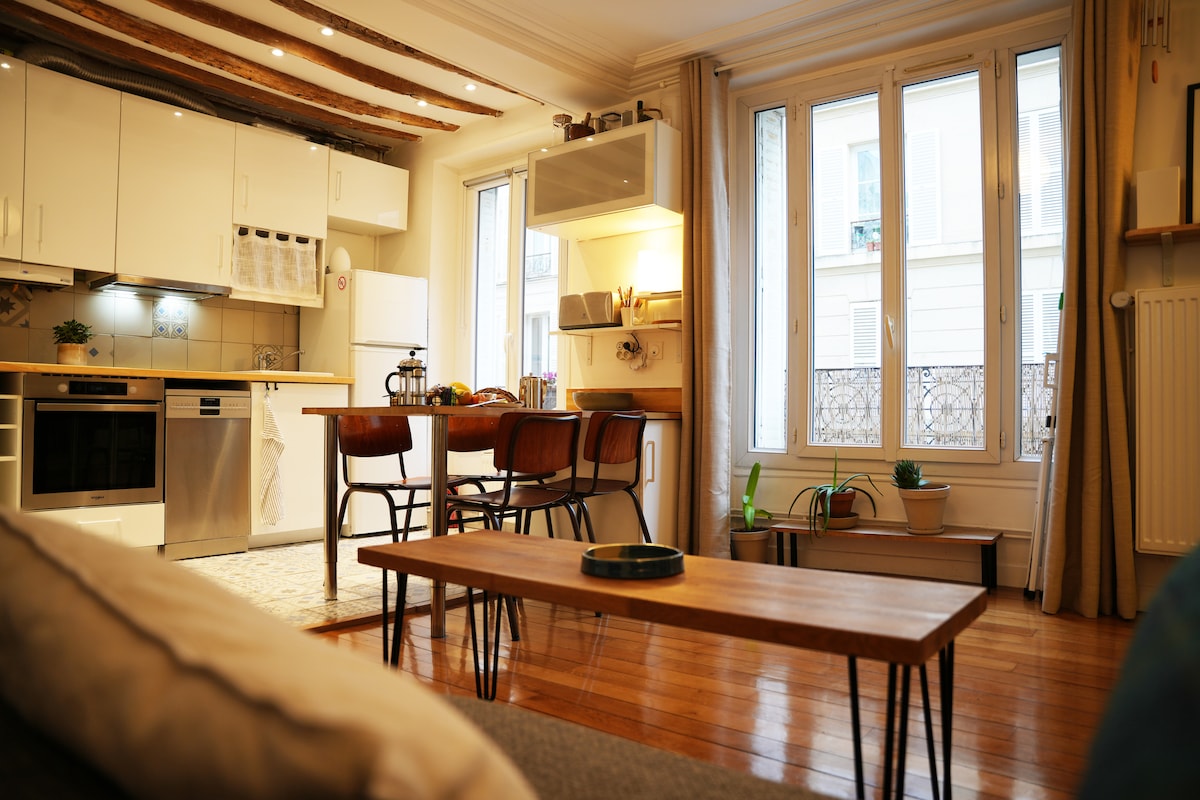 Просторная и светлая квартира в винтажном стиле, расположенная в Батиньоле. Есть все необходимые удобства: Wi-Fi, стиральная машина, посудомоечная машина, духовка, микроволновая печь, много места для хранения и даже поворотный стол. В спальне есть двуспальная кровать размера Queen size (160 x 200). Квартира расположена на 6-м этаже с лифтом. Здесь тихо, и в нем очень приятно остановиться. Рядом с улицей Леви со всеми этими магазинами и ресторанами.