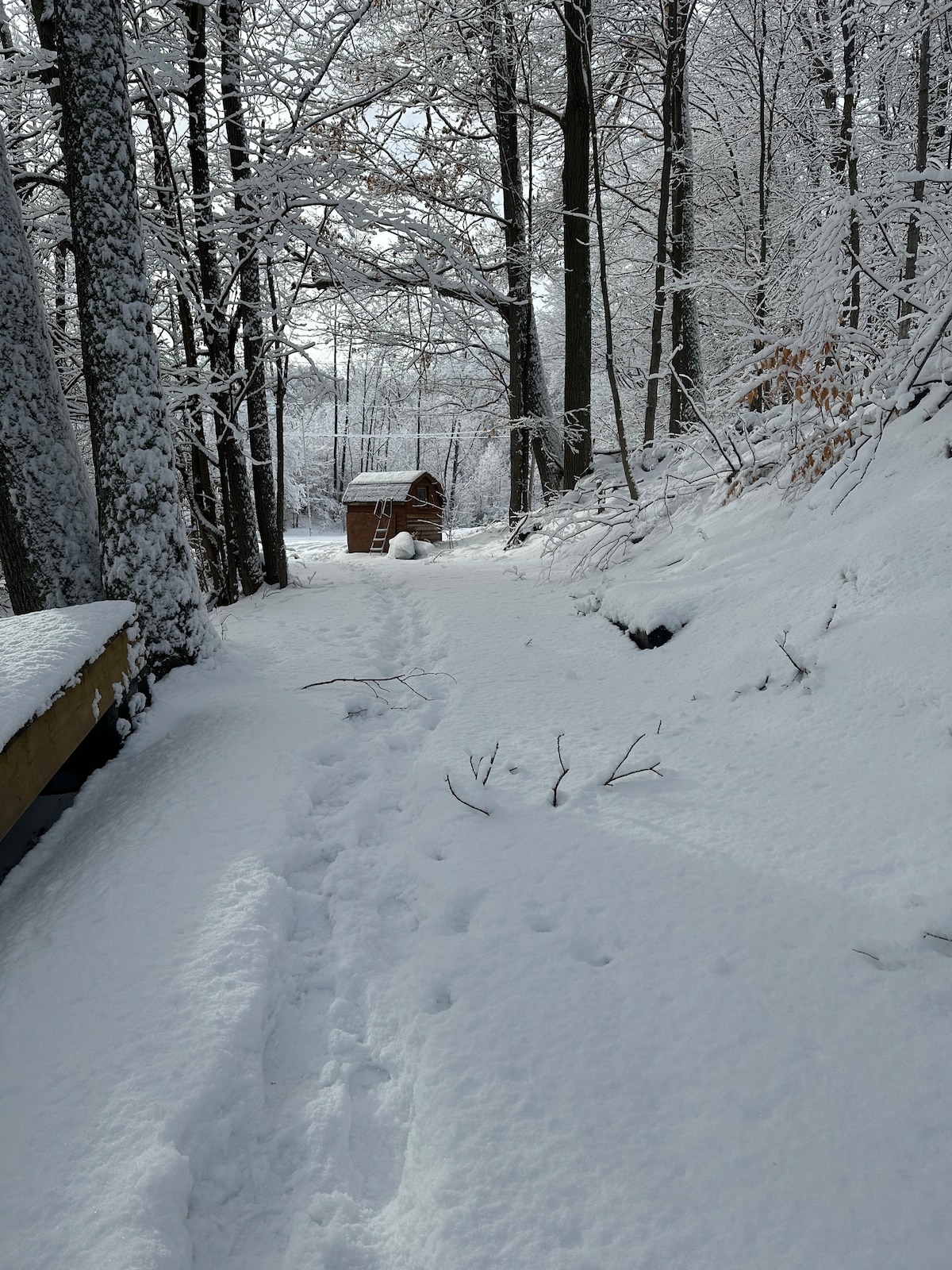 На вершине хребта Шугар-Мейплс находится хижина площадью 400 кв. футов, расположенная на прекрасном участке Канадского щита. Домик имеет открытую планировку и хорошо оборудован: есть очень удобная двуспальная кровать размера Queen size, дровяная печь и кухня, дополнительное спальное место на диване-кровати. Это глэмпинг в лучшем виде! Хижина расположена в задней части нашего 20 акров с тропами и дикой природой. ***Обратите внимание, что вам придется пройти около 200 метров от коттеджа до коттеджа.