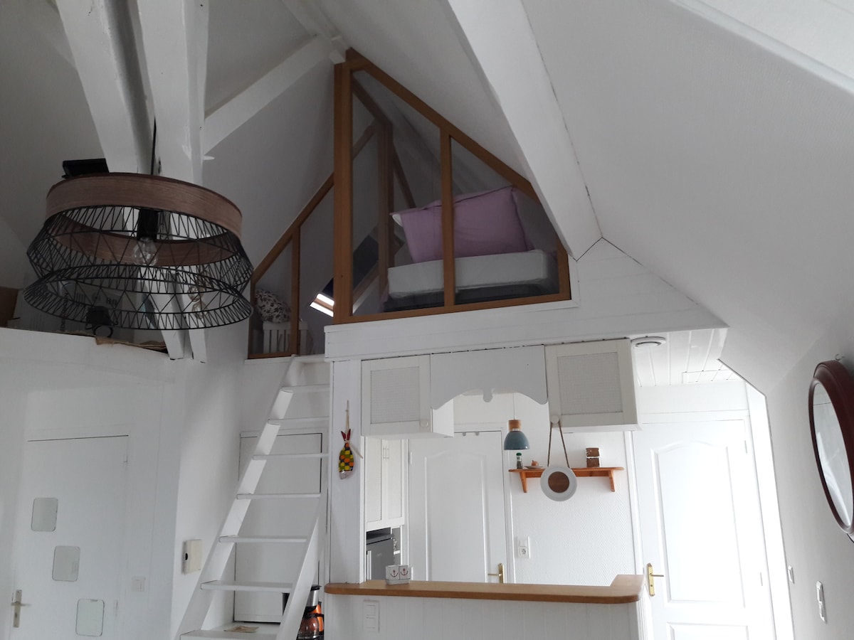 Квартира в аренду в центре Бац-сюр-Мер, менее 500 метров ходьбы от пляжа Сен-Мишель и рядом с магазинами и железнодорожным вокзалом (5 минут ходьбы). Квартира расположена на 2 этаже и может вместить от 6 до 8 человек и включает в себя большую гостиную (диван-кровать), открытую кухню, 1 спальню с ванной комнатой на первом этаже, туалет, 2 ванную комнату и 2 спальни с мезонином (лестница мельницы). Украшение полностью переделано. Рядом с городами Круазич, Пулиген, Ла-Боле.