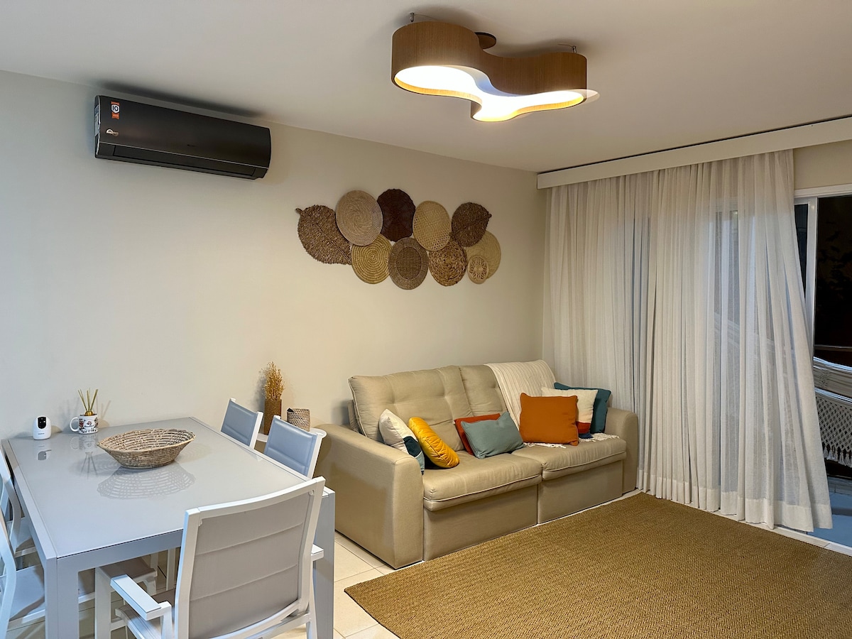 ⛱️Уютный и веселый кондоминиум на пляже! 🌞Оплатите Airbnb в рассрочку (до 6 платежей) 💳 и наслаждайтесь прекрасным пляжным климатом Сеары в этом комфортабельном и полностью оборудованном кондоминиуме на песке в Beach Living. 🌊Знаменитый аквапарк Beach Park находится примерно в 300 метрах, вы можете прогуляться вдоль пляжа. 🌞 Квартира на первом этаже, 2 спальни с кондиционером (1 люкс), 2 ванные комнаты, гостиная/столовая, полностью оборудованная кухня, балкон и сад. Вентилируемая, тенистая сторона. Идеально подходит для семей🏖️