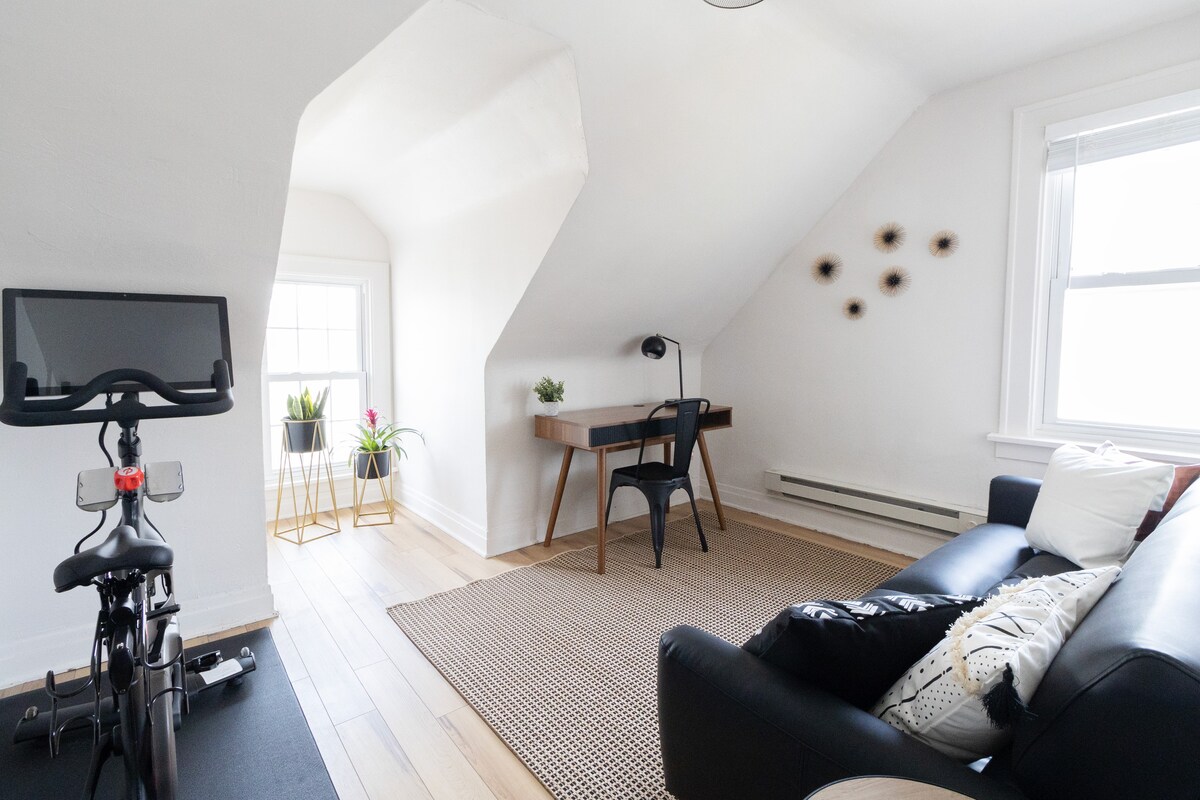 Добро пожаловать во вторую частную квартиру с 1 спальней/1 спальней в очаровательном фермерском доме 1880-х годов, расположенном в дружелюбном пешеходном районе. Полностью оборудованная кухня со всем необходимым для самостоятельного приготовления пищи, стиральной машиной/сушилкой и отдельным офисом в помещении. Бесплатная парковка на улице. Вы всего в 5 минутах ходьбы от Starbucks, различных ресторанов, баров, магазинов, магазинов, троп. 5-10 минут езды до клиники Кливленда, университетских больниц, Case Western, музеев, парков, Маленькой Италии и других достопримечательностей. 15 минут езды до основных достопримечательностей и озера Эри.