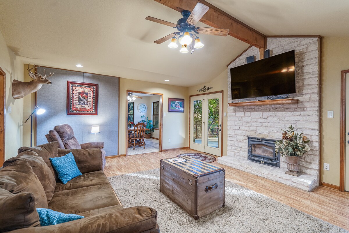 Этот красивый, современный и недавно отремонтированный дом расположен недалеко от всего, что может предложить Остин: в 20 минутах езды от всемирно известной живой музыки и кулинарной сцены мирового класса. До парка Зилкер, где проходит музыкальный фестиваль ACL, Таун-Лейк и Бартон-Спрингс можно доехать за несколько минут. Водительские источники, свадебная столица Техаса, - это дом для десятков виноделен и пивоваренных заводов. Барбекю Salt Lick совсем близко. Легендарная терраса, задний двор, бар и покерная комната делают это место отличным местом для развлечений.