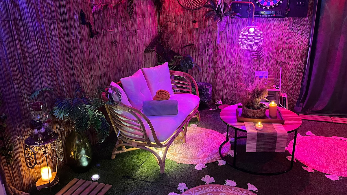 ✨ Découvrez le Mirage Tropical , une parenthèse raffinée au bord de la Loire 🌴. Profitez d’un Spa , Table de Massage d’une terrasse élégante et d’un espace jungle dépaysant pour vous évader. Amusez-vous autour du jeu de fléchettes, partagez un apéro exotique ou détendez-vous dans une atmosphère unique. Le soir venu, la chambre s’illumine de couleurs envoûtantes pour un moment chic et romantique 💖. Ici, chaque détail sublime votre séjour pour créer des souvenirs mémorables.🌴❤️❤️💕💕💕👄🫂❤️