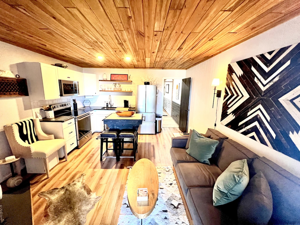 Городской оазис на Кинг-стрит Припаркуйте свой автомобиль в нашей полностью отремонтированной студии прямо на краю города и наслаждайтесь пешей прогулкой по всему Буну. Идеальное место для футбольного матча App State, конференции или концерта в кампусе, деловой поездки или романтического отдыха на выходных. Все ваши любимые магазины и рестораны в центре города находятся в нескольких шагах от отеля. В центре города есть только несколько частных домов на короткий срок, так что не позволяйте этой уникальной возможности уехать!