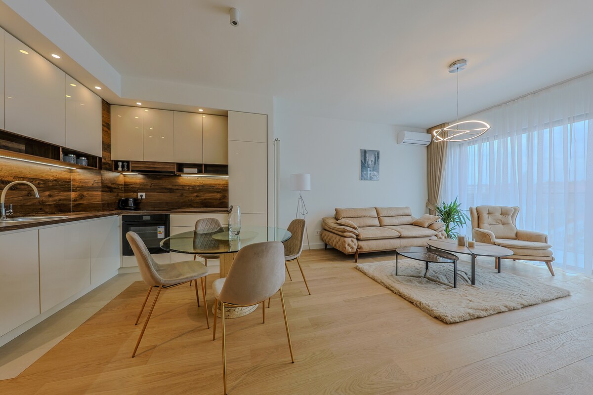 Welcome to our beautiful apartment! This will be your haven of comfort and elegance during your stay in Belgrade Waterfront. With its bright and modern design, our apartment provides the perfect space for relaxation and enjoyment. Located just a stone's throw away from the Galerija shopping center, you'll have easy access to shopping, dining, and entertainment options. The space comfortably accommodates five people, giving you plenty of room to unwind and socialize. Enjoy every moment!