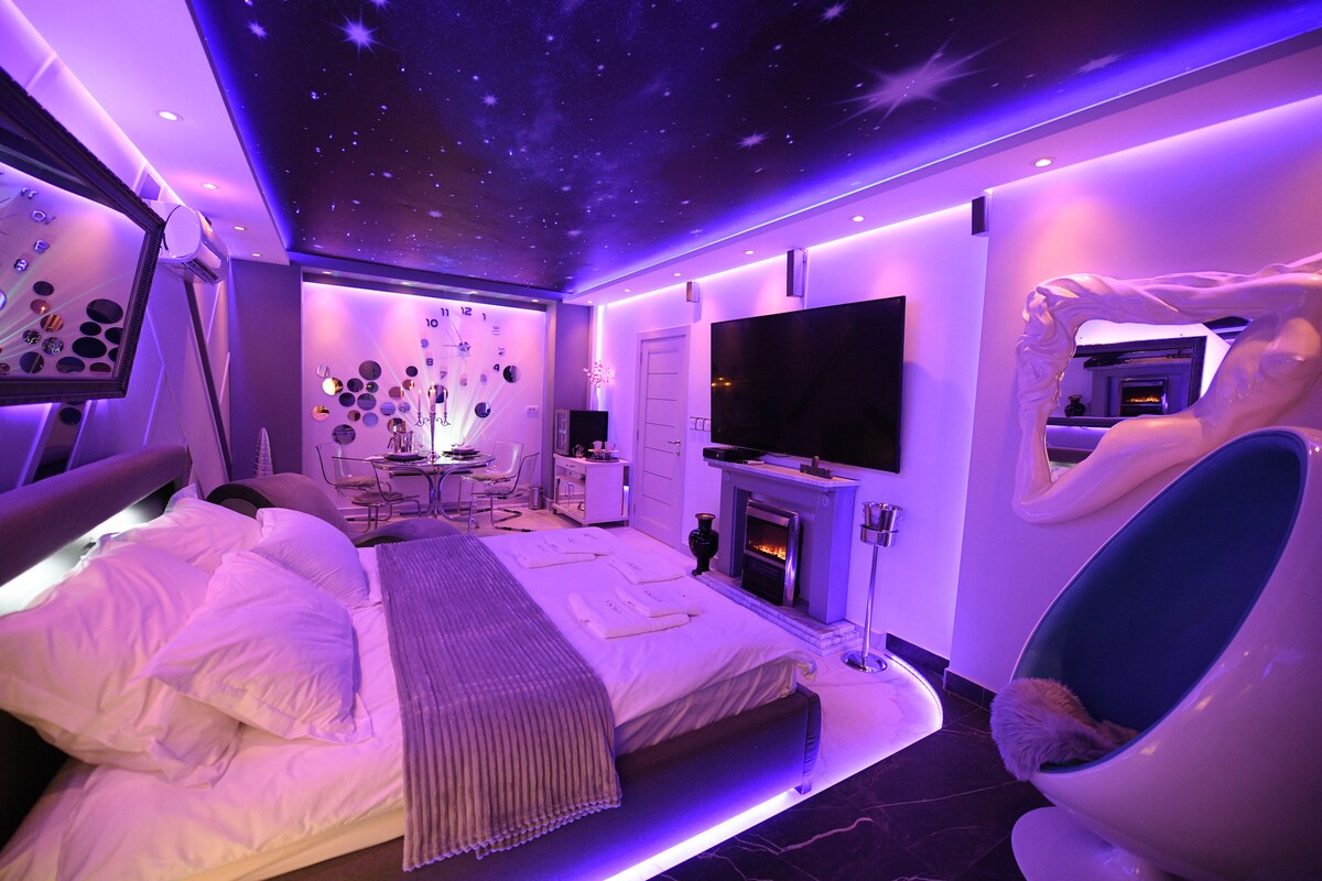 В категории «Роскошный люкс» AURORA SPA - это выдающееся концептуальное жилье, предназначенное для того, чтобы предоставить клиентам необычные сенсорные впечатления. Помимо привлекательного дизайна и жилья, в апартаментах используется «Умный» для корректировки различных функций. Рекомендуется для пар, люкс с джакузи AURORA SPA - это неповторимый опыт. Сердечные рекомендации. МАССАЖ, ОФОРМЛЕНИЕ, АРОМАТЕРАПИЯ, КИНОТЕАТР, ГИДРОМАССАЖНЫЙ БАССЕЙН, ИГРЫ XBOX, САУНА...