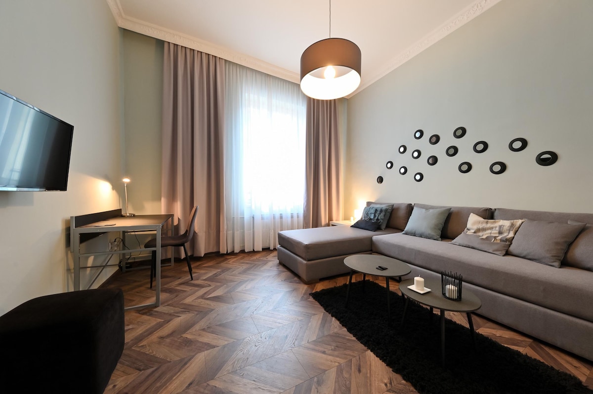 Квартира расположена в самой красивой части города Вракар (старая часть города), 15 минут пешком до главной площади (Trg Republike, Terazije, Trg Nikole Pasica, Knez Mihajlova street). Квартира находится недалеко от многих ресторанов, фаст-фудов, кафе, баров. Декорировано в белых и коричневых тонах, очень приятно и удобно для длительного и короткого пребывания. Она состоит из гостиной, отдельной спальни, ванной и кухни. Для безопасного и комфортного проживания некоторые части улучшаются