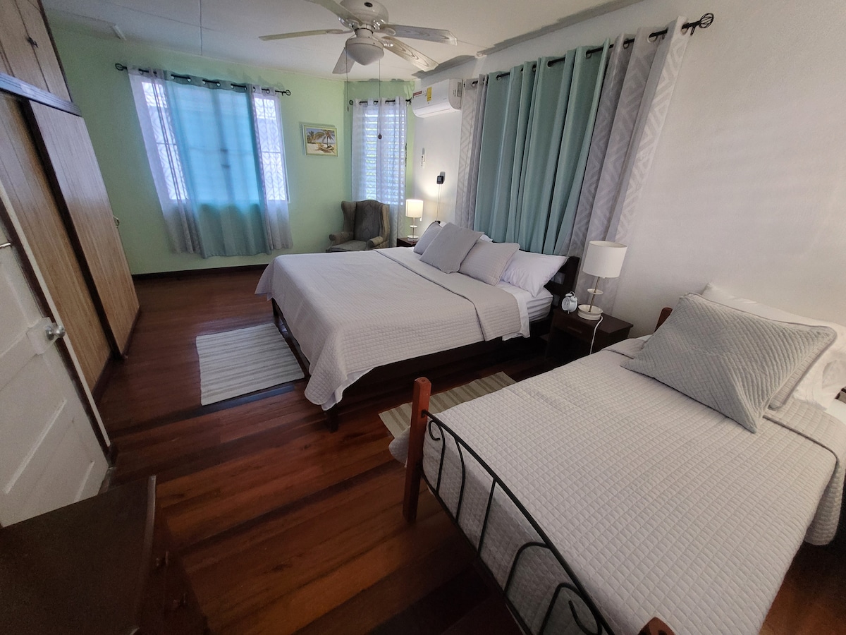 Ищем уединенный отдых на Caye Caulker. Мой частный дом с 1 кроватью расположен недалеко от деревни, рядом с муниципальным аэропортом. Вас встретит вид на пляж, морской бриз и местные деревья на острове. Прогулка до главной деревни займет 10 минут. В моем доме есть вся необходимая техника, кровать размера King size, кондиционер, телевизор, Wi-Fi, стиральная машина и сушилка. Приезжайте в Белиз, не отказываясь от современных удобств.