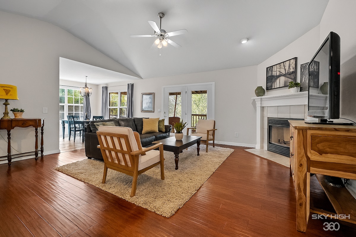 Бунгало на дереве было лично отремонтировано и спроектировано вашими хозяевами, Стивом и М. за последний год. Все помещения совершенно новые и излучают комфорт и покой. От уютной гостиной с электрическим камином до просторной террасы с видом на лес. Вы найдете несколько отдельных зон для приготовления пищи. Рекомендуем отдохнуть в ванне с сокером или взять книгу и отдохнуть в главной кровати размера King size. Велосипедные дорожки, гольф и озера повсюду. Приезжайте в NWA и станьте нашим гостем!