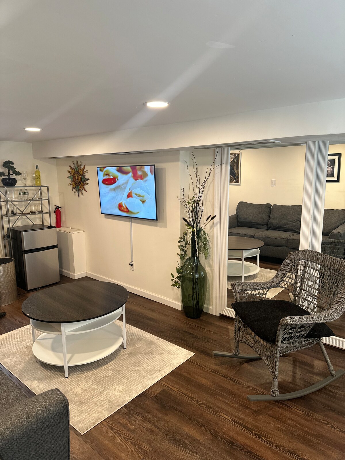 Люкс Serenity — это функционально спроектированное пространство открытой планировки на нижнем уровне с СОБСТВЕННЫМ входом, кухней, спальней, ванной комнатой и гостиными. Люкс Serenity с чистым современным дизайном и мебелью предлагает уютную, спокойную и безопасную обстановку. Отдохните и расслабьтесь в этом недавно отремонтированном пригородном люксе, расположенном в 10 минутах от UBS Arena и Бельмонт-парка, в 5 минутах от Belt и Southern State Parkways, в 15 минутах от JFK, в 10 минутах от LIRR и в 25 минутах от LGA.