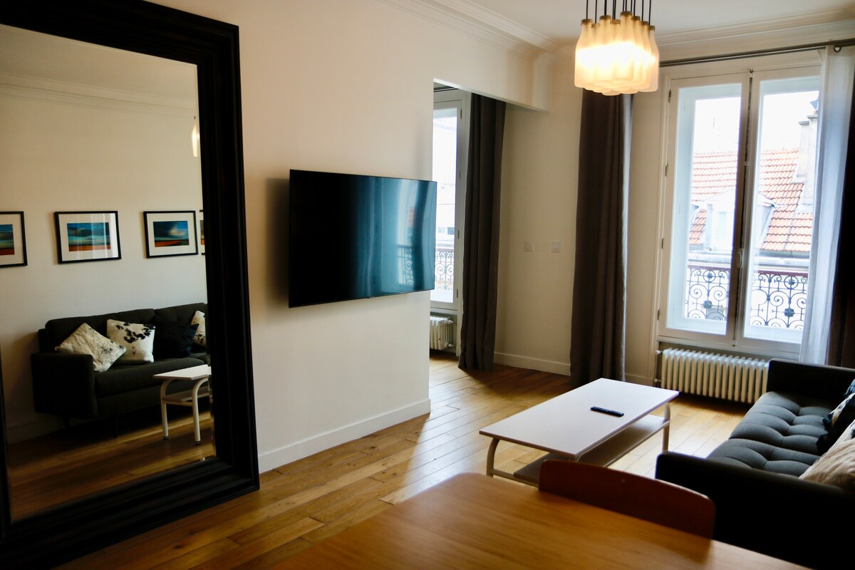Добро пожаловать ко мне домой! Добро пожаловать в мою уютную квартиру площадью 35 квадратных метров в центре 11-го округа Парижа, в районе Оберкампф. Самостоятельное заселение. Квартира расположена на 3-м этаже без лифта, во внутреннем дворе, который просто замечательный. В этой уютной и красиво оформленной квартире могут разместиться до 4 человек: в одной спальне установлена кровать 140x190 см, а в гостиной — очень удобный диван-кровать 120x190 см. Жилье удобно расположено недалеко от станции метро «Менильмонтан» и всех баров и ресторанов на улице Оберкампф.