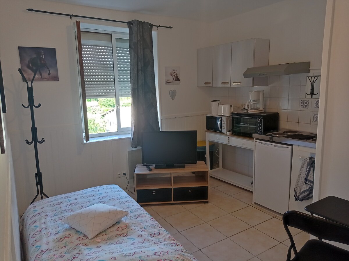 Жилье рядом с местами военных действий (Дуомон), в 2 км от центра Вердена. Идеально подходит для пар и семей с детьми. Вам понравится комфорт, спальня с кроватью 160 x 200 и телевизором, гостиная на первом этаже, диван-кровать (140 x 190), телевизор, кухня и душевая комната, туалет (детское оборудование, кроватка и стульчик для кормления по запросу). У вас будет отдельный вход в конце травяной подъездной дороги. Вы будете жить в хозяйственной постройке с видом на сад.