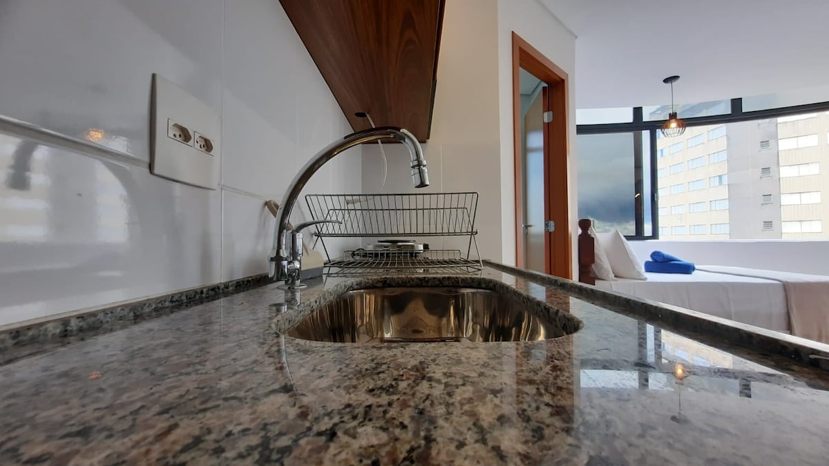 Роскошный лофт площадью 45 кв. м, кондиционер, стол на 4 человек и столешница, полностью оборудованная кухня, сушилка, стиральная машина. Nespresso и другие занятия. Очень просторная квартира с двуспальной кроватью размера Queen size, 1 диваном-кроватью и смарт-телевизором с 55-дюймовым Wi-Fi и сеткой. Красивый вид! Общая открытая зона: полный тренажерный зал, прачечная, бассейн с подогревом, джакузи и сауна. Привилегированное расположение рядом с Diamond, Materdei Hospital, BH Central Market, Supernosso и т. д. 1 швейцар, работающий круглосуточно Удобства, которые вы чувствуете дома!