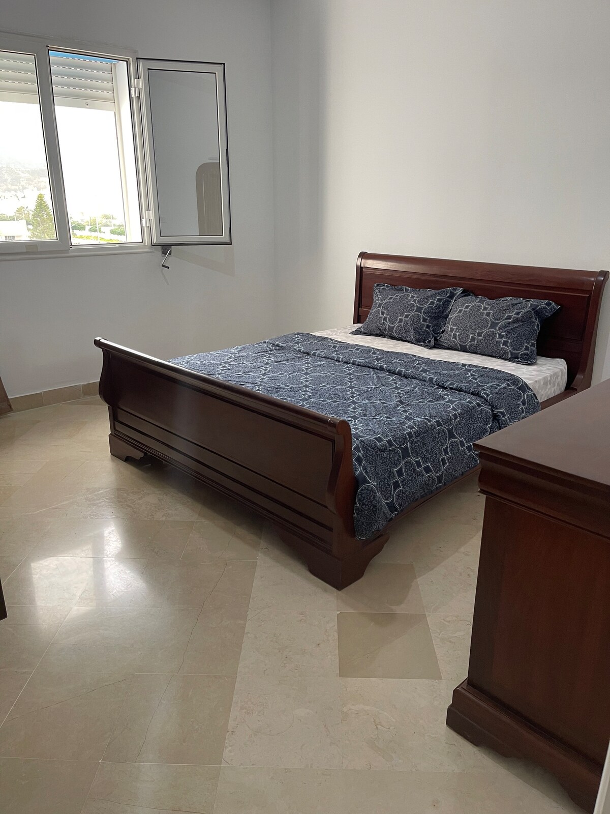 on aura le plaisir de vous accueillir dans notre appartement équipé d'un grand séjour , une chambre a coucher spacieuse cuisine bien équipé et dune salle de douche moderne on a le chauffage le climatiseur télévision une lave linge Wifi en fibre optique tout ca dans une résidence neuve bien sécurisé avec des cameras de surveillance et gardien et bien placée autour des commerces restaurent endroit vivant et au même moment calme quand on est chez soi !Hola !! bienvenue !!مرحبا !!welcome
