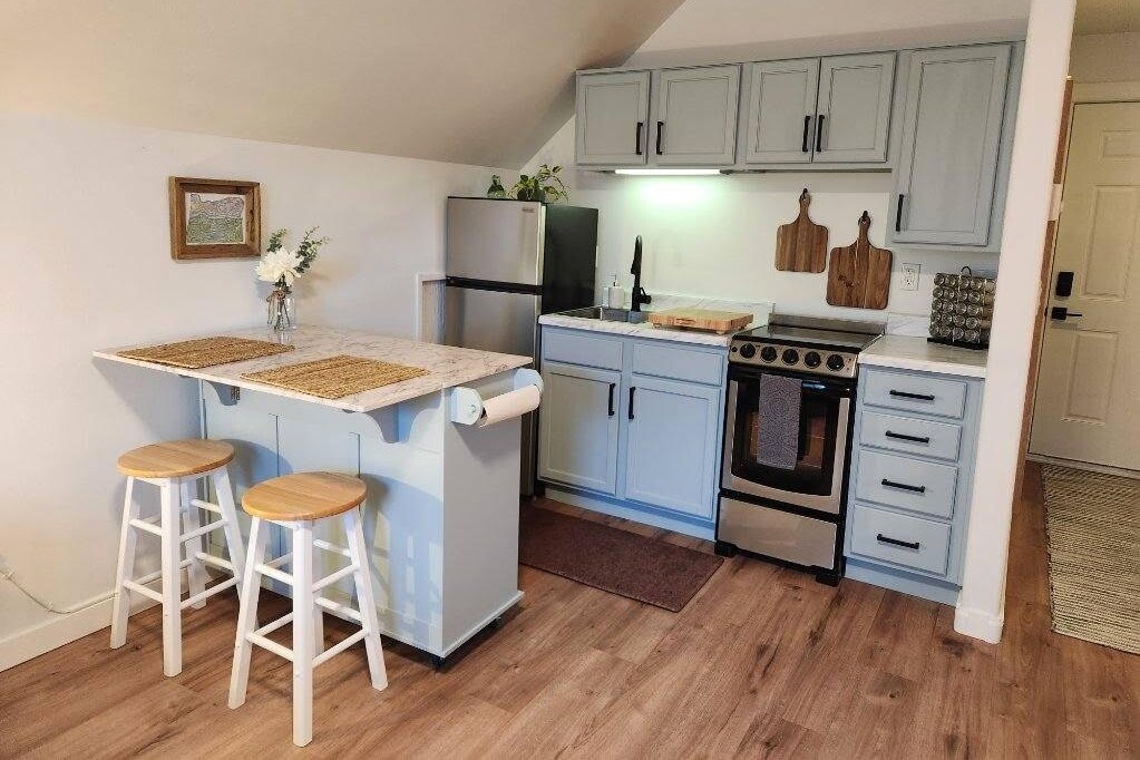 Насладитесь нашим новым изготовленным на заказ ADU, расположенным в квартале от реки Дешут в тихом жилом районе, всего в 10 минутах ходьбы от центра города вдоль Ривер-Трейл. В этом современном, светлом и уединенном помещении вас ждут полы из твердой древесины, столешницы с водопадом, встроенное рабочее место, полы в ванной с подогревом, 55-дюймовый телевизор Smart TV, барбекю и костровище, а также бесконечная парковка с горячей водой и зарядное устройство для электромобилей. Одна двуспальная кровать размера King size, одна кушетка с выдвижным ящиком и один двуспальный диван-кровать размера Queen size.