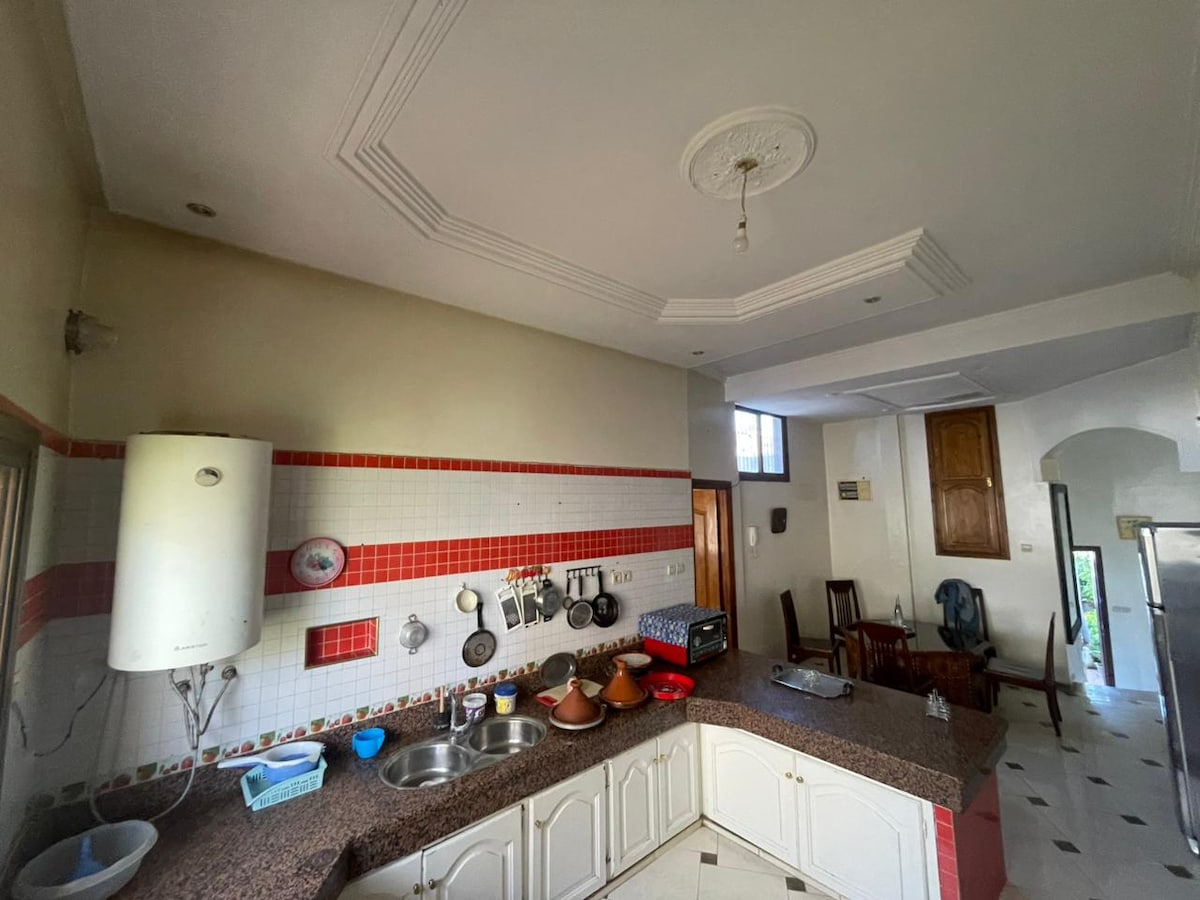 Идеально подходит для семей, пар или группы до 4 гостей. Бесплатная парковка на территории здания, безопасная, удобная и идеальная для гостей с автомобилем. Ухоженная квартира с 2 спальнями, уютной гостиной, оборудованной кухней, большой ванной комнатой и Wi-Fi. Магазины, аптека, рестораны и супермаркет BIM прямо внизу. Всего в 15 минутах от аэропорта. В нескольких минутах ходьбы от медины и CTM, и в 10 минутах езды на такси или машине от водопадов Айн-Ассердун.