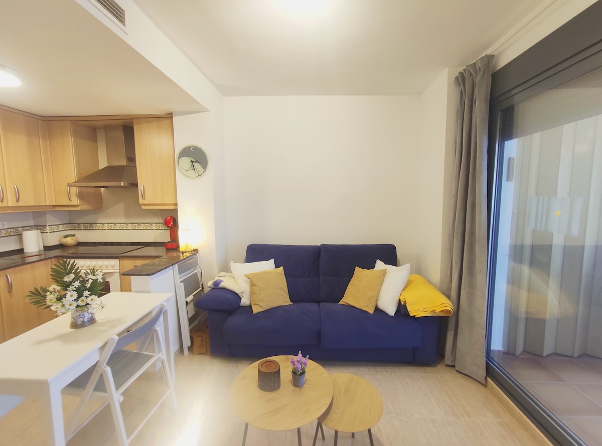 Красивая квартира с 1 спальней и диваном-кроватью для 4 взрослых. Она только что была отремонтирована и обставлена новой мебелью. Она находится в порту и в двух минутах ходьбы от пляжа. Неподалеку находятся парки, множество ресторанов, террас и магазинов. Это просторная квартира, в которой есть вся необходимая посуда, включая аксессуары для пляжа. Есть WIFI, кондиционер, новый 40-дюймовый телевизор, гитара, рабочий стол, микроволновая печь, стиральная машина, посудомоечная машина... Он расположен между Винаросом и Пеньисколой, соединенной велосипедной дорожкой.