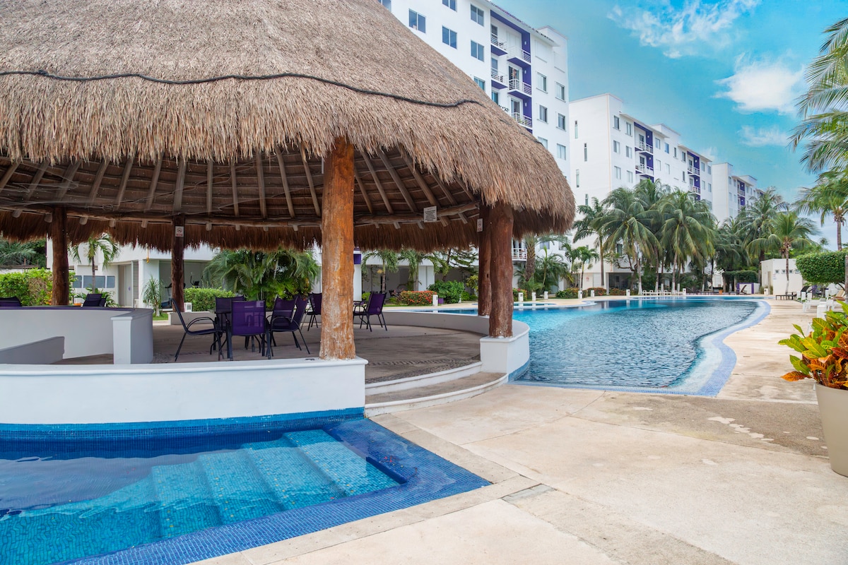 Enjoy Cancún from this comfortable and functional apartment, perfect for relaxing or working remotely. • Air conditioning in all areas • WiFi and Netflix included • Condominium swimming pool • Strategic location next to Plazas Outlet • 10-minute walk to Walmart and supermarkets • 15 minutes by public transport to the Hotel Zone and beaches • Condominium with elevator and easy access 🚍 Public transport nearby • 🛒 Shops within walking distance