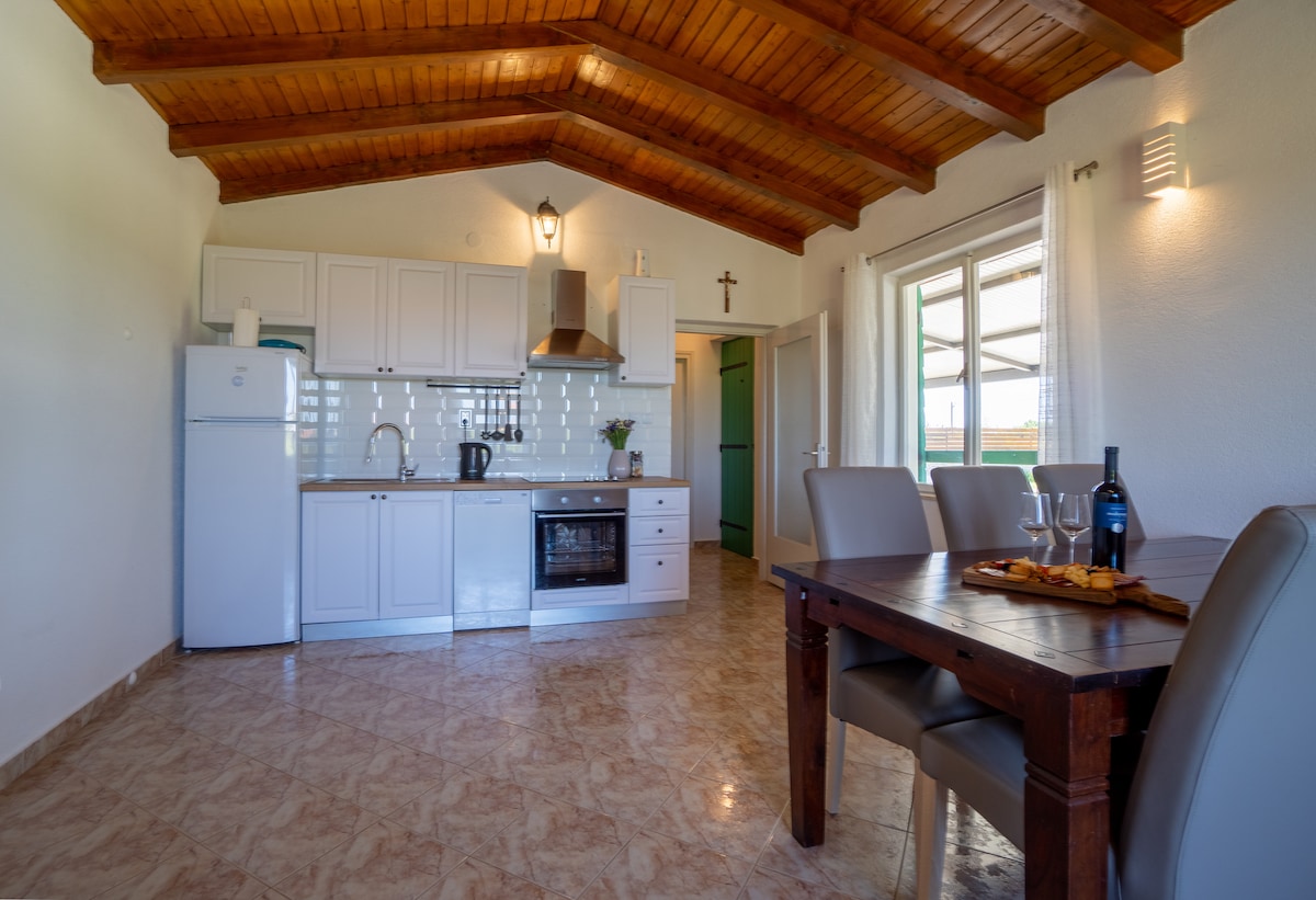 Объект расположен прямо на побережье в красивой бирюзово-динамичной бухте Косирина. Обеспечивает уединение, окружен зеленью и цветами в тени векового оливкового дерева. Состоит из гостиной, кухни, спальни и ванной комнаты. В комнате две французские кровати (галерея). Гостиная застеклена раздвижными стенами и имеет вид на море и весь залив. Терраса крытая, и в распоряжении гостей 2 шезлонга, 2 качели, доска для серфинга, гриль, солнечный душ на улице...