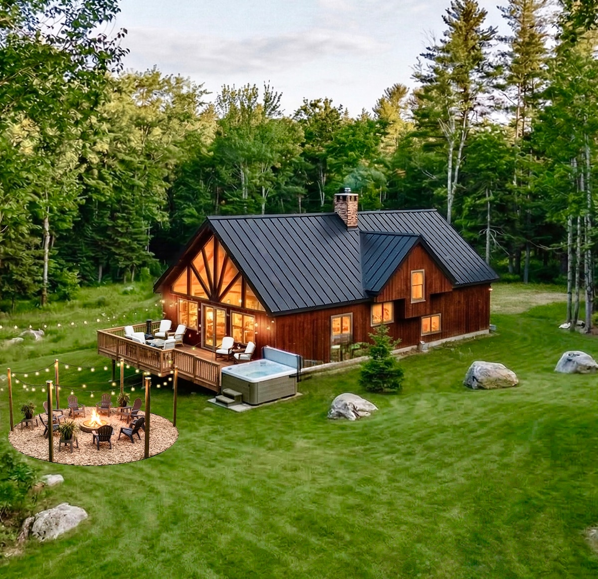 Отдохните в HYGGE HOUSE, вас ждет уютный и современный отдых в горах. Отдохните и получите незабываемые впечатления с семьей и друзьями в роскошном современном уединенном месте на 4 акрах леса в Страттоне. Расслабьтесь в собственной ГИДРОМАССАЖНОЙ ВАННЕ и САУНЕ или отдохните в деревенском ДОМЕ НА ДЕРЕВЕ, чтобы насладиться отдыхом в горах. Эта архитектурная жемчужина, расположенная всего в нескольких минутах от горы Стрэттон и горы Сноу, идеально сочетает в себе уединение и приключения. К услугам гостей высокоскоростной Интернет, кухня для гурманов и уютный каменный камин.