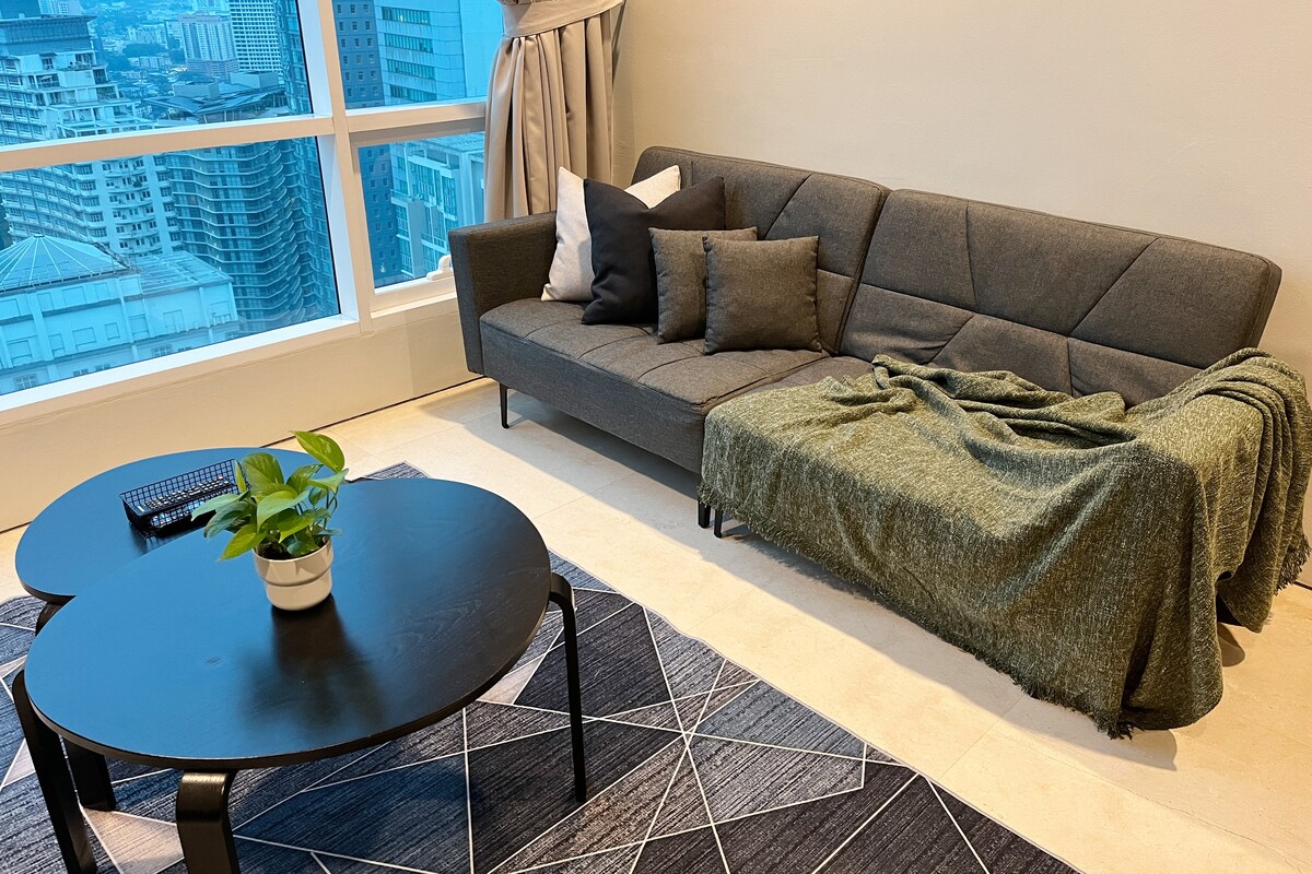 Добро пожаловать в наше убежище Skyline Sanctuary! 🌇✨ Из окон этой просторной квартиры с 3 спальнями открывается панорамный вид на сверкающий горизонт Куа Куала-Лумпура. Идеально подходит для семей и групп до 8 человек, это стильное, светлое жилье всего в 10 минутах ходьбы от KLCC. Потрясающие виды — незабываемое удовольствие. Наслаждайтесь рассветом или отдыхайте под городскими огнями.