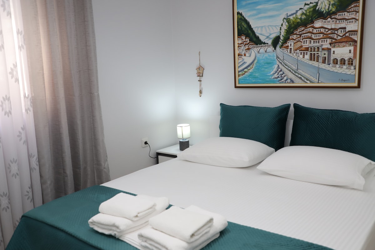 Добро пожаловать в нашу комфортабельную квартиру в центре Берата! Эта современная и просторная квартира, рассчитанная на 2 гостей, расположена в одном из лучших районов исторического района Берата. Всего в нескольких шагах от Бератского замка и музея иконографии. В квартире уютная спальня с двуспальной кроватью размера King size. Расположенный в центре города, вы легко доберетесь до ресторанов, кафе и основных туристических достопримечательностей. Имеется бесплатная парковка. Ждем Вас в гости!
