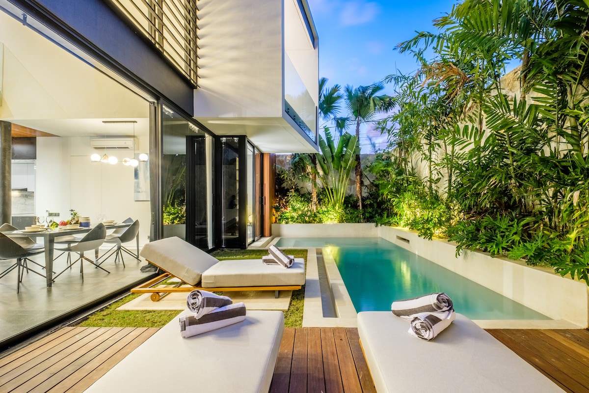 One Bedroom Studio Deluxe Private Pool Townhouse unit is perfect for young couples, digital nomads and single individuals who prefer boutique travel and want to experience a more urban lifestyle side of Bali. If you appreciate luxury hotel standards, clean architecture and contemporary design, you will love staying in our studio. Enjoy your holiday or long stay in the comfort of a fully-serviced boutique home. We give our guests an effortless living experience in an urban oasis in the tropics.