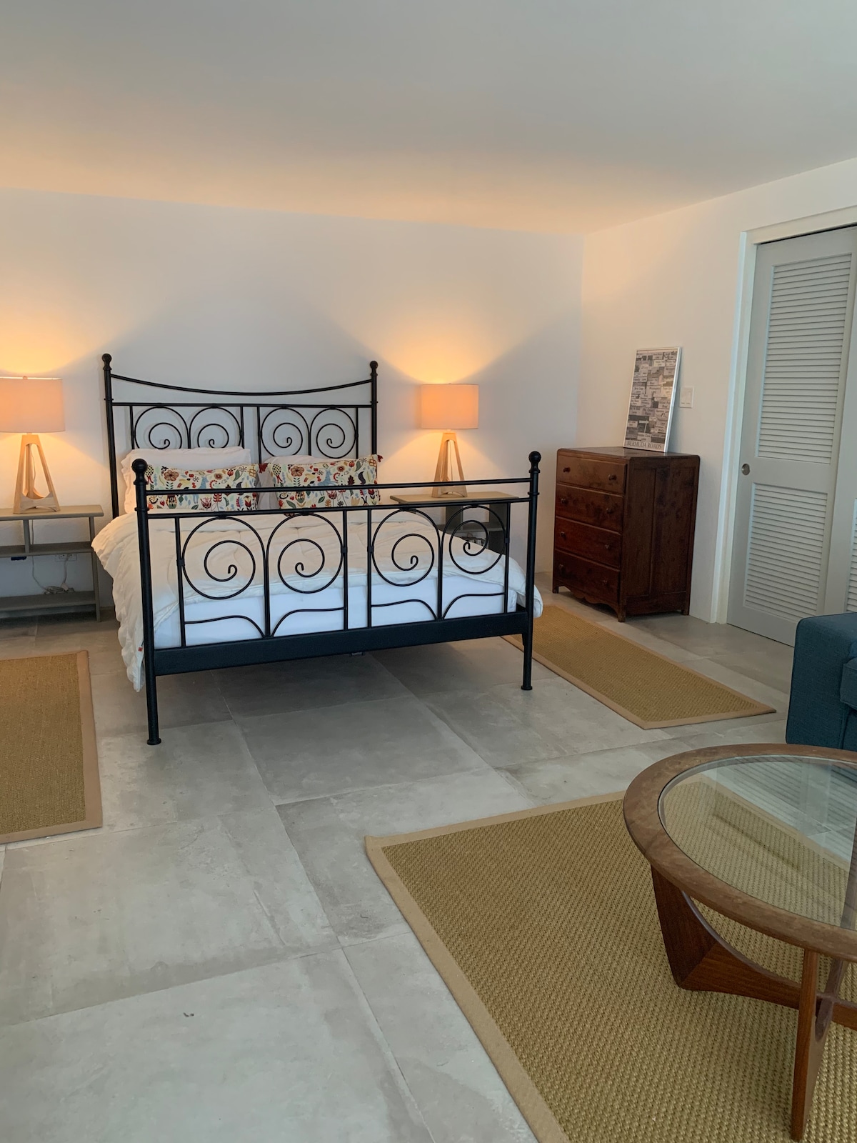Квартира находится в моем доме, является автономной и состоит из спальни и ванной комнаты. Есть отдельный вход через французские двери в патио и сад. К услугам гостей холодильник, микроволновая печь и кофемашина Keurig. В квартире есть кондиционер, Wi-Fi и кабельное телевидение. Прогулка до Гамильтона займет всего пять минут, там есть магазины и рестораны, автобусная станция и паромный терминал. Расположение в центре делает его удобным местом для знакомства с Бермудскими островами.