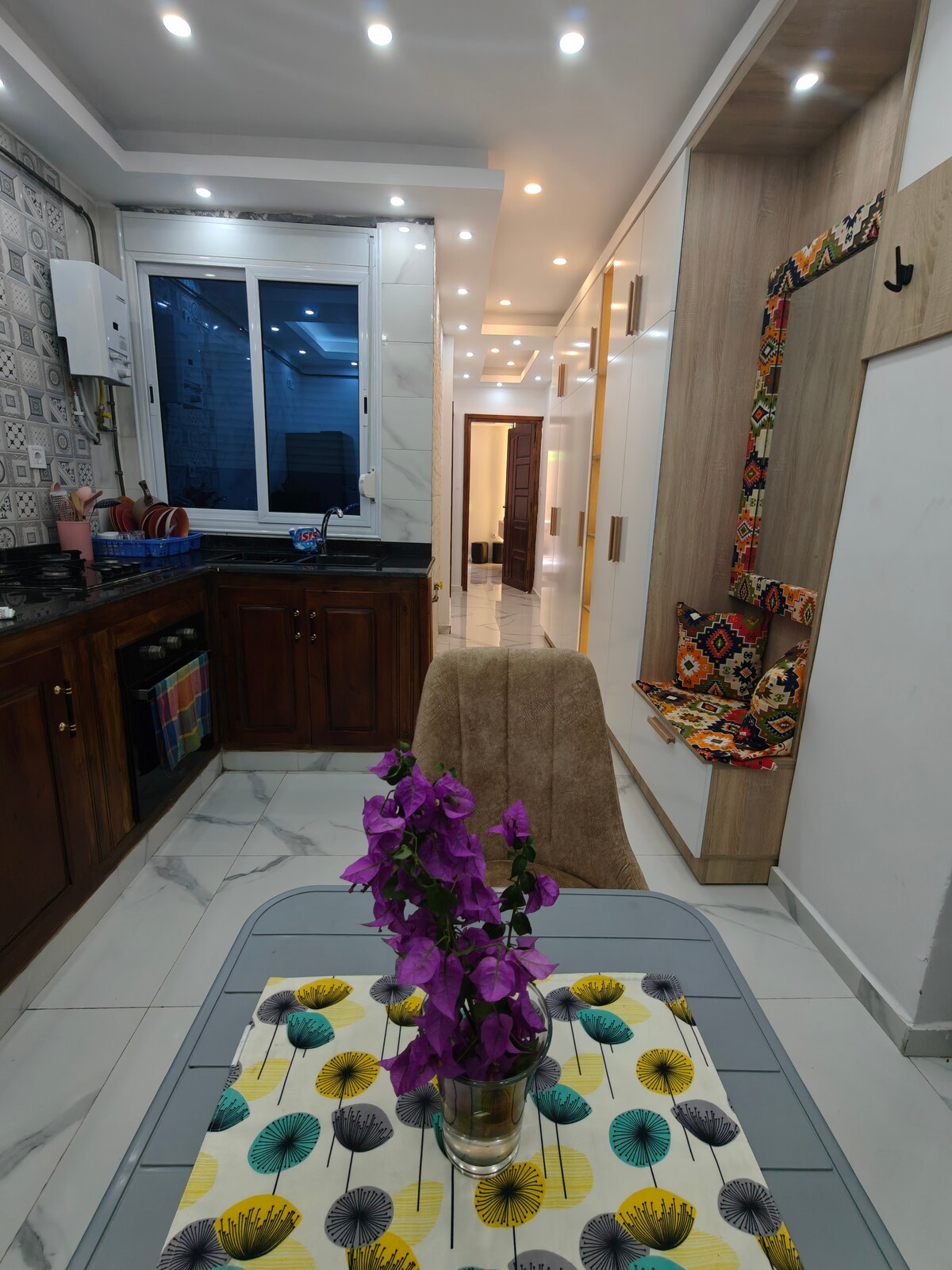 Это тихий и семейный район, предлагающий вам спокойствие и приятное пребывание с его уникальным захватывающим видом и теплым пространством. Квартира подходит для небольшой семьи, супружеской пары, одиночки, группы девушек или группы мужчин. Незамужние пары или смешанные группы не допускаются. Поблизости: Поликлиника Seraidi в 20 метрах. Родниковая вода и сад в 50 метрах. 300 метров до отеля El Mountazah и парка развлечений Cap Fun. Рестораны Общественный и частный транспорт (канатная дорога, такси, групповой транспорт).