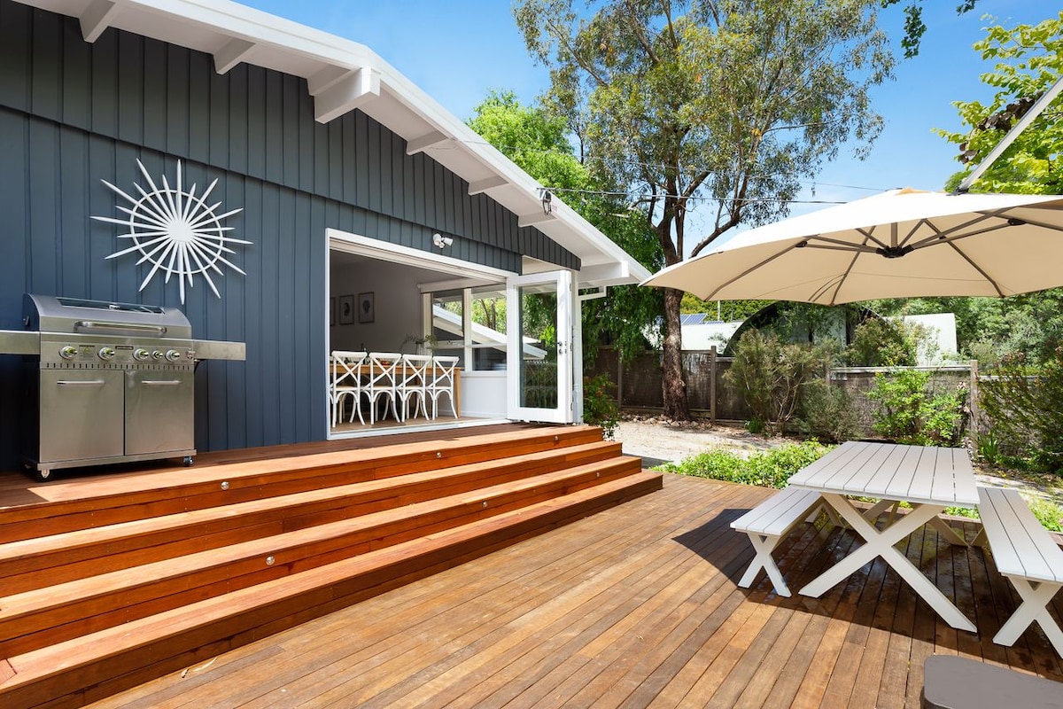 Relaxed Foreshore Beach House Tucked at the end of a quiet cul-de-sac this foreshore hideaway is made for barefoot holidays. Wander to rock pools, play on the lawn, watch wallabies graze and kookaburras laugh in the trees or gather on the deck as the BBQ sizzles and waves roll in. Inside, two living areas give families space to spread out while cosy bedrooms invite slow mornings with sea views. A fully equipped kitchen makes longer stays and entertaining a breeze your island home away from home