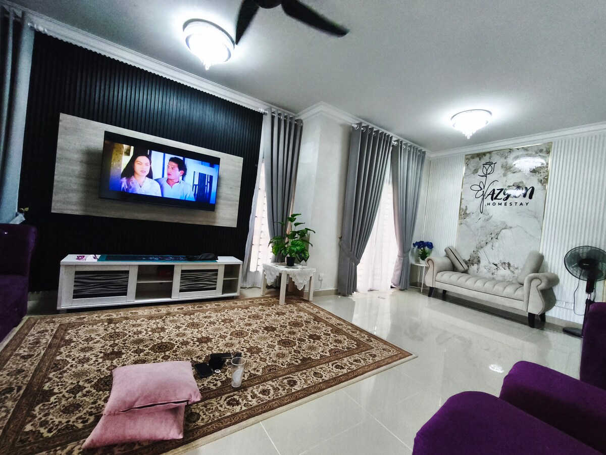 Bermaley Homestay — Кондиционер в гостиной. - 3 комнаты и 2 ванные комнаты с водонагревателем. - В главной спальне есть 1 двуспальная кровать размера Queen size и кондиционер. - В 2-й спальне 1 кровать размера Queen size, 2 односпальные кровати с кондиционером. - В 3-й спальне установлена 1 кровать размера Queen size с кондиционером. - Диспенсер воды Coway. - Кухонная печь. - микроволновая печь; - холодильник; — Smart TV 43 дюйма с Njoi. — СТИРАЛЬНАЯ МАШИНА ОТСУТСТВУЕТ! Bermaley Homestay находится недалеко от: — Пантай-Букит-Келуанг: 5 минут езды. — Пантай-Эйр-Тавар — 10 минут езды. - Причал до Пулау Перхентяня - 15 минут езды.