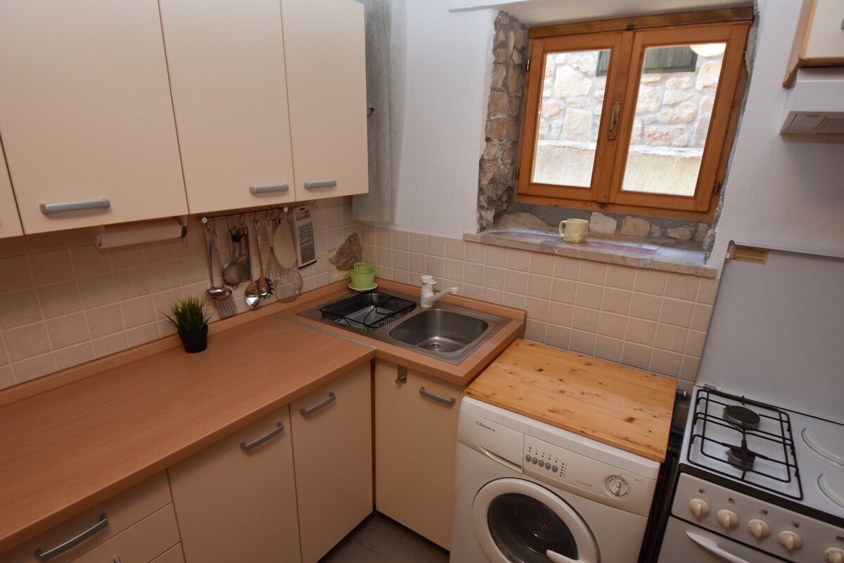 Квартира расположена в отреставрированном традиционном доме всего в нескольких шагах от моря (5 м) и примерно в 100-150 от центра города, где вы найдете магазины, рестораны, аптеки и многое другое. Гости могут пользоваться всей красивой квартирой с двумя спальнями, полностью оборудованной гостиной и частью террасы. Терраса является частной для гостей нашего дома, в которой есть еще одна квартира для двух человек. В патио есть швартовка лодки. Все расходы включены в цену, постельное белье, полотенца, кондиционер и т. д.