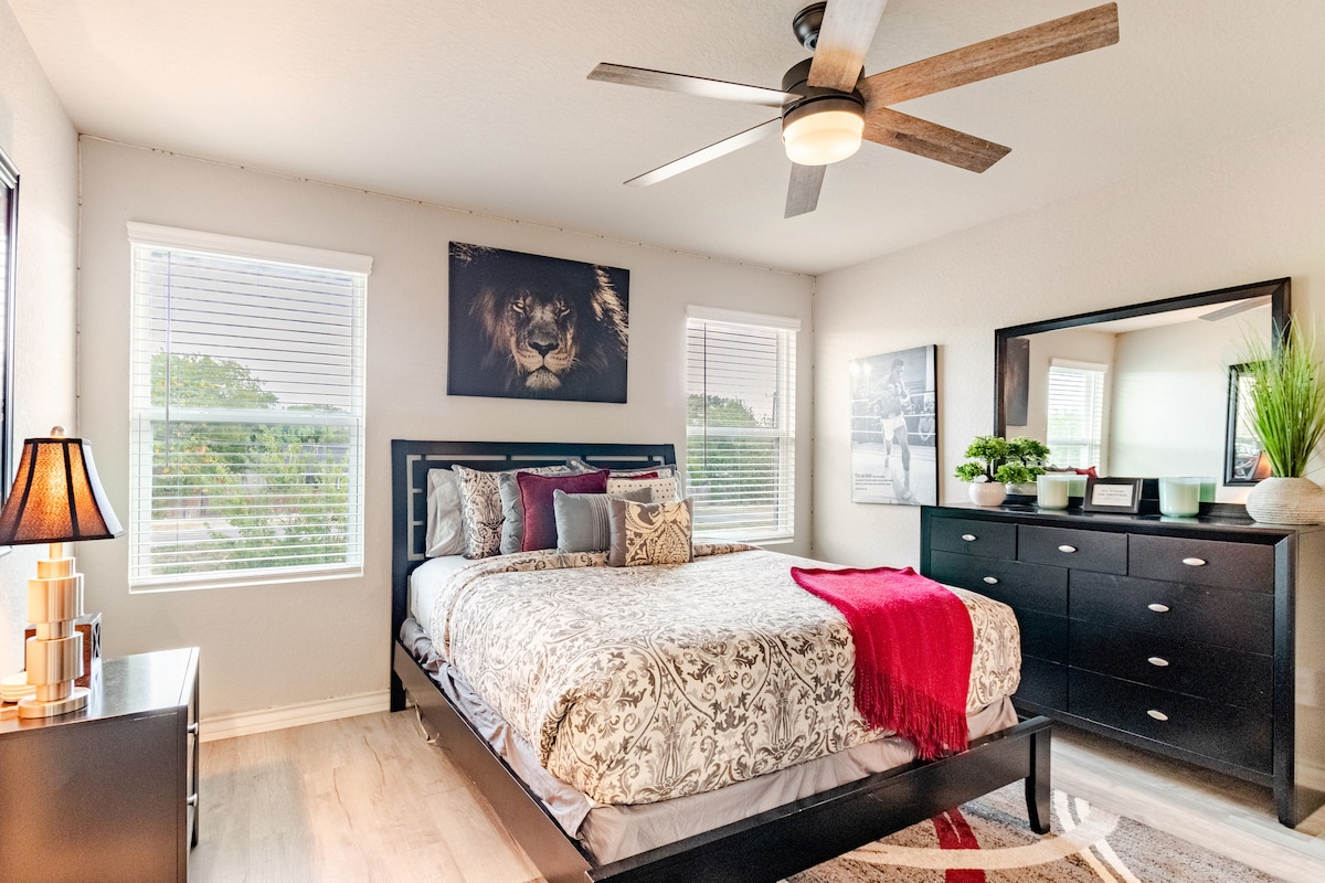 Отдохните в нашей стильной, недавно отремонтированной квартире в Юниверсал-Сити! Это тихое место для отдыха идеально подходит для семейных путешественников и компаний. К услугам гостей собственная гидромассажная ванна, полностью оборудованная кухня и отдельное рабочее место. Наслаждайтесь современными удобствами и уютной атмосферой всего в нескольких минутах от авиабазы Рэндольф, ресторанов и магазинов. Идеально подходит для расслабляющего отдыха или продуктивной работы из дома.