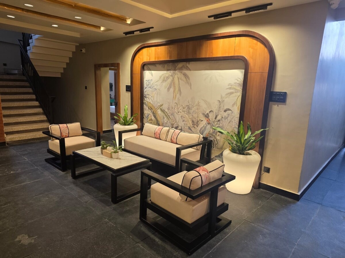 Насладитесь стильным отдыхом в этом месте, расположенном в центре города, в 15 минутах (3-4 км) от всех основных государственных офисов, торгового центра DB, колледжей, железнодорожных вокзалов и ISBT. Это роскошное жилье расположено на первом этаже и предназначено для того, чтобы дать вам комфорт дома, но ощущение 5-звездочного проживания по очень доступной цене. В этом жилье могут легко разместиться 8–12 человек. Есть ухоженный сад, которым можно наслаждаться, потягивая чай с красивого балкона.