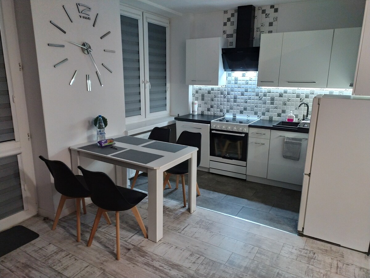 Современная квартира, расположенная на первом этаже, в сердце города, всего в 50 метрах от улицы Липова. Жилье расположено в тихом районе, гарантирует тишину и покой. В квартире есть бесплатный Wi-Fi 5Ghz (100 МБ/с),телевизор и кровать в спальне 160 см х 200 см с удобным матрасом. Вы также найдете свежее постельное белье и полотенца, шампунь, гель для душа, мыло, кофе, чай, специи и т. д. Сердечно приглашаю вас и желаю приятного отдыха.